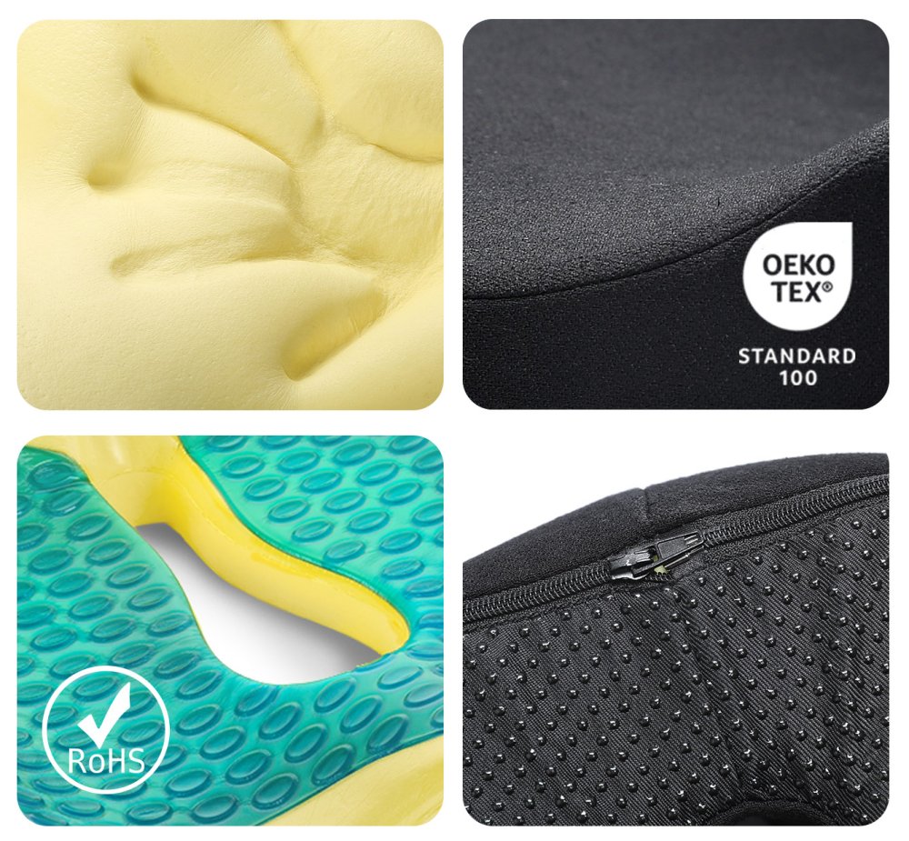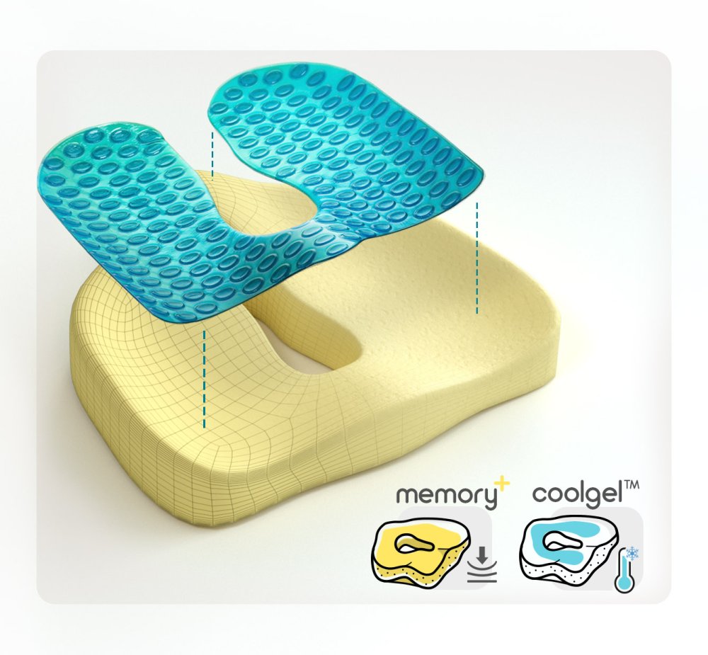 Ergonomický podsedák na židli MOSH ERGO2 B1G je vyroben z prvotřídní paměťové pěny, přizpůsobující se konturám těla, zajišťující příjemný pocit po celou dobu sezení. Právě elastická paměťová pěna s vysokou hustotou a otevřenou bublinkovou strukturou se nedeformuje a snadno obnovuje svůj tvar. Je citlivá na teplo, netlačí na tlakové body, ale naopak se jim přizpůsobuje. Díky své vzdušné struktuře paměťová pěna dobře větrá, umožňuje odpařování vlhkosti a účinně zabraňuje pocení. Je antibakteriální a vhodná i pro alergiky. Navíc úspěšně prošla testy SGS a RoHS, což potvrzuje, že splňuje přísné ekologické a bezpečnostní normy. Gelová vrstva efektivně odvádí přebytečné teplo, což zajišťuje optimální termoregulaci. I při delším sezení se tak budete cítit pohodlně.
