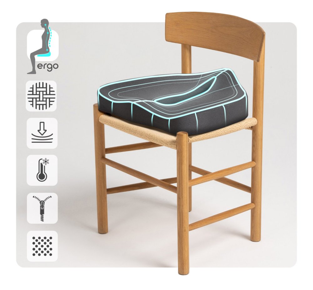 Ergonomický podsedák na židličku MOSH ERGO2 B1G je praktickým pomocníkem všude tam, kde se vám na křesle nebo židli nedostává pohodlného a zdravého sezení. Podložka vyniká jedinečným designem, který doplňují funkční materiály. Díky tomu může být dlouhé sezení doma, na cestách nebo na pracovišti podstatně příjemnější.
