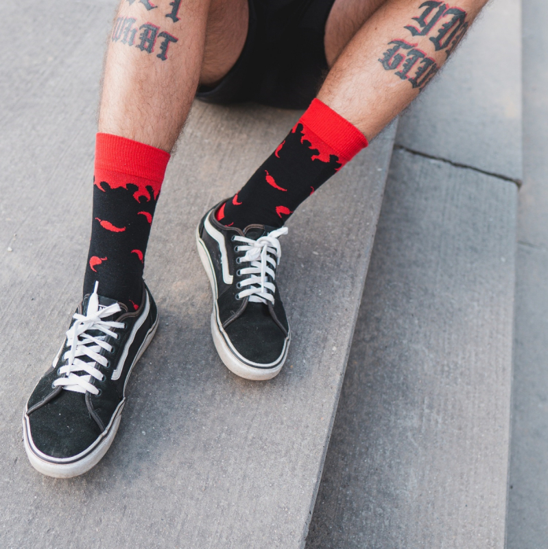Stylové ponožky HOT-CHIP Na rande, na večírek i na jednání. Tyhle ponožky se hodí zkrátka všude! Jejich příjemný materiál i originální design si ihned oblíbíš. Navíc každý uvidí, do jakého týmu patříš – do týmu milovníků kvalitního chilli!