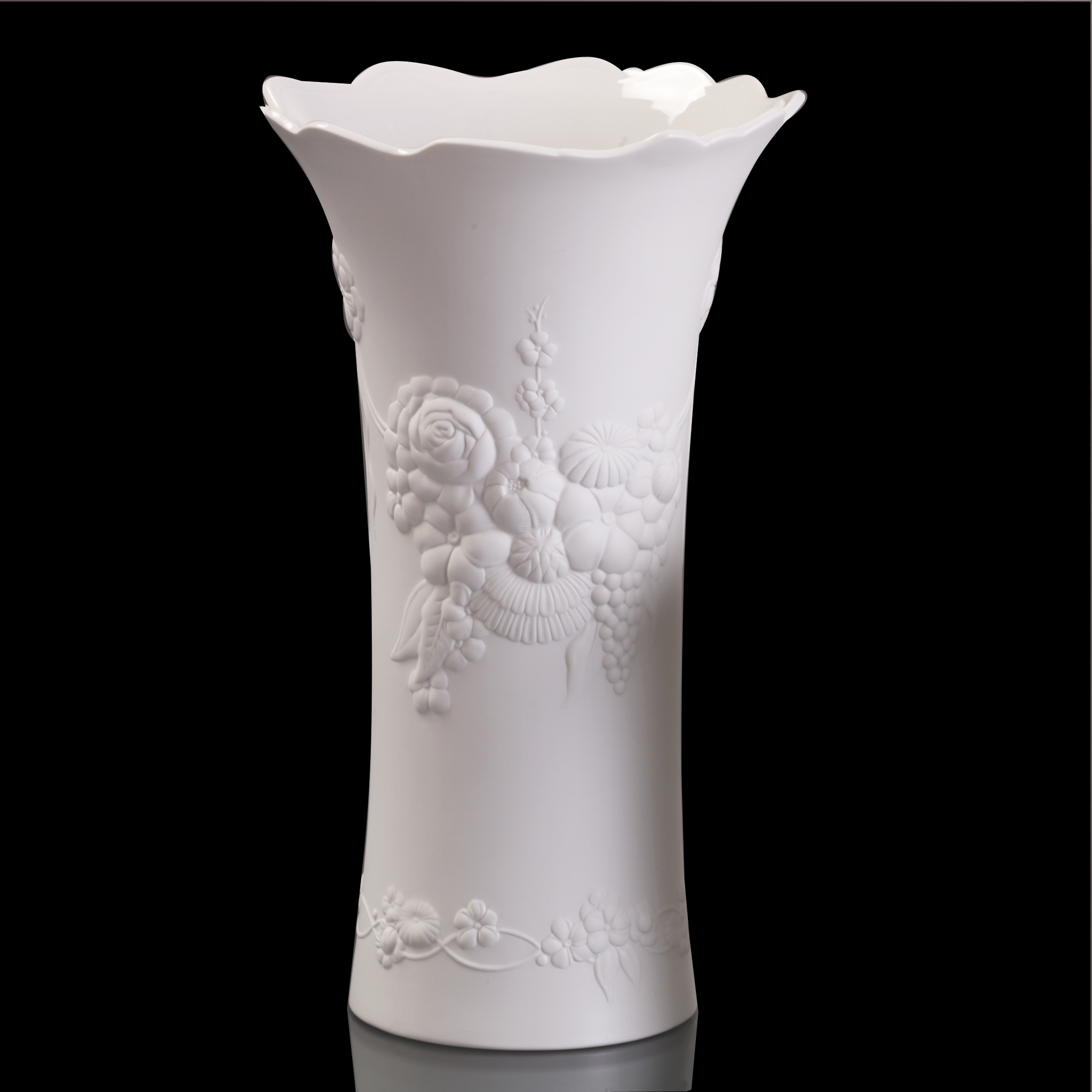 Flora Váza 29 cm Kolekce Flora oslní bohatými květinami vyraženými v bílém porcelánu, které navozují harmonickou atmosféru venkovského stylu. Materiál: tvrdý po…