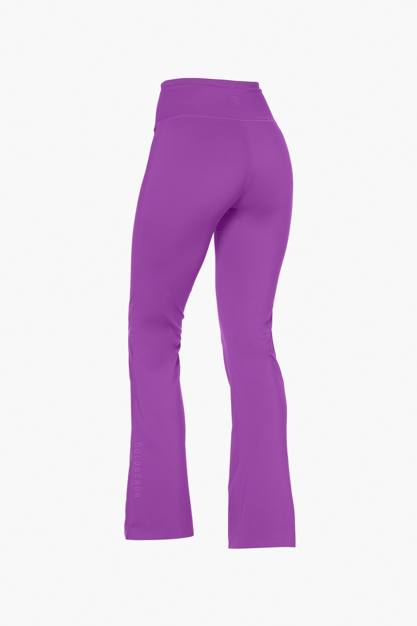 Dámske športové legíny LUNGE sú navrhnuté pre maximálne pohodlie pri pohybe v modernom športovo-elegantnom vzhľade. Priliehavý strih v oblasti bokov a stehien krásne zvýrazní postavu, zatiaľ čo rozšírené kalhoty (flare leg) dodávajú legínam trendy charakter. Funkčný materiál Powerstretch interlock je pružný, priedušný a spoľahlivo odvádza vlhkosť. Vďaka rýchloschnúcim vlastnostiam a anti-odour úprave zostanete v suchu a pohodlí aj počas náročného tréningu. Vnútorný powermesh pás poskytuje dodatočnú oporu a stabilitu pri pohybe. Praktické detaily, ako je skryté vrecko na kľúč vo vnútri pásu či tónové gumové logá Goldbergh, dopĺňajú športovo-prémiový dizajn. Legíny môžete jednoducho skombinovať so športovým topom z rovnakej kolekcie a vytvoriť tak dokonale zladený outfit.