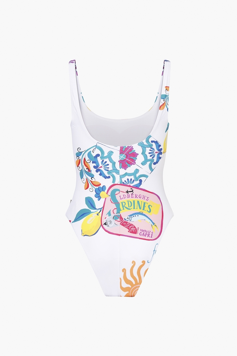 Jednodielne plavky CAPRICIA sú dokonalou kombináciou elegancie a funkčnosti. Dizajn s celoplošnou Capri dream potlačou a farebnými strass kamienkami na prednej strane vytvára luxusný a výrazný letný look. Model má hlbší výstrih na chrbte, ktorý dodáva plavkám ženský a moderný charakter. Plavky sú vyrobené z pružného powerstretch jersey materiálu, ktorý sa dokonale prispôsobí postave a poskytuje maximálne pohodlie. Materiál je rýchloschnúci, odolný voči chlóru aj slanej vode a zároveň poskytuje UV ochranu, takže je ideálny na pláž aj k bazénu. Komfort pri nosení zabezpečuje aj jemná podšívka a vyberateľné košíčky, ktoré umožňujú prispôsobiť podporu podľa potreby.