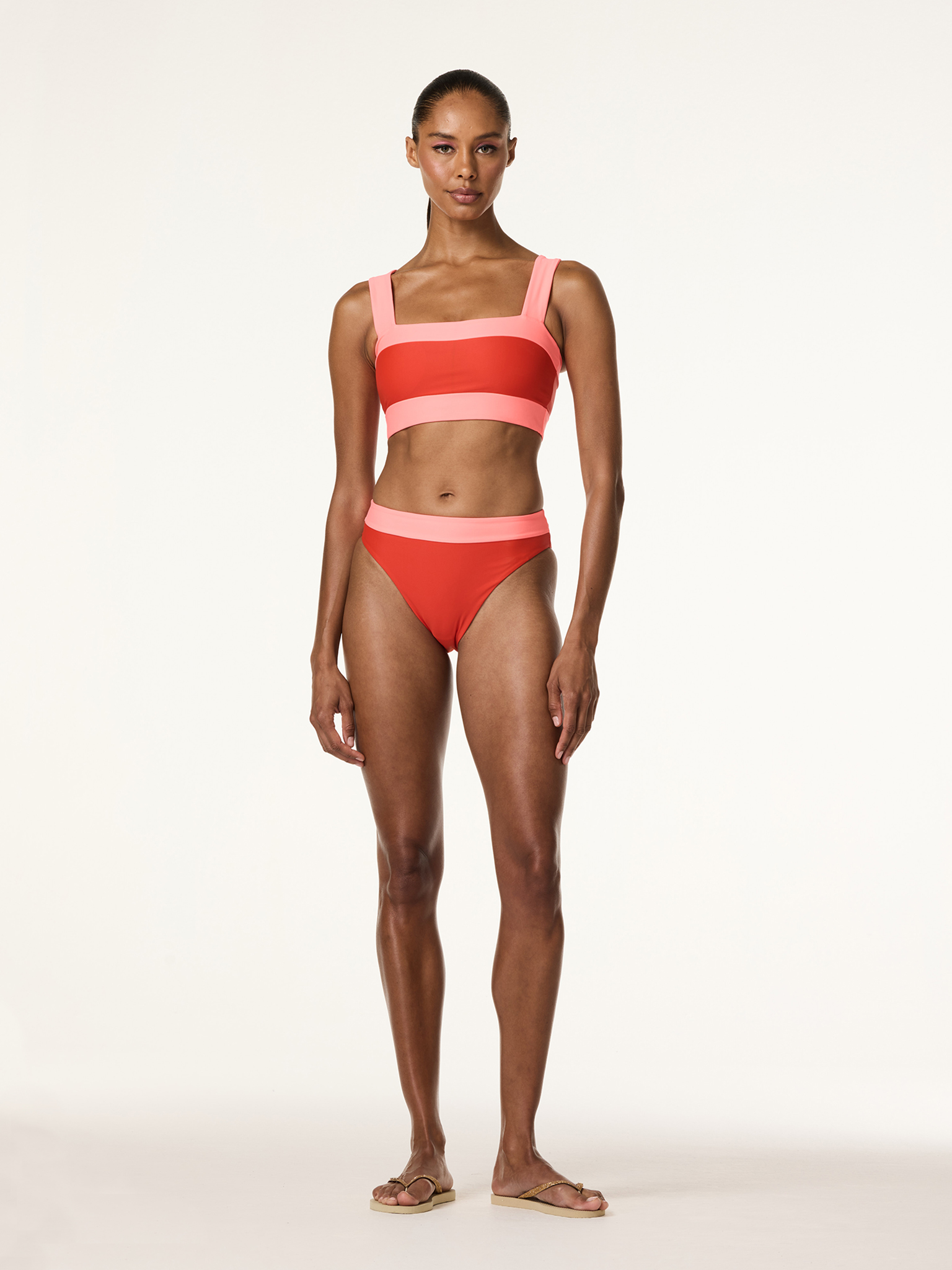Predstavujeme vám moderný a štýlový bikini spodný diel Colourblock, ktorý je ideálny pre každú milovníčku minimalistického dizajnu a komfortu. Tento spodný diel s úzkym strihom je vyrobený z kvalitného powerstretch jersey materiálu, ktorý je nielen pružný, ale aj rýchloschnúci, čo zabezpečuje pohodlie pri každodennom nosení. Dizajn spodného dielu je doplnený kontrastnými pásmi v rôznych farebných kombináciách čo dodáva kúsku moderný a dynamický vzhľad. Tonálna potlač loga GB na zadnej strane pásu pridáva exkluzívny detail. Pre kompletný set si nezabudnite pridať bikini top Plonge. Tento spodný diel sa skvelo hodí na každú plážovú príležitosť a je navrhnutý tak, aby poskytoval pohodlie a štýl.