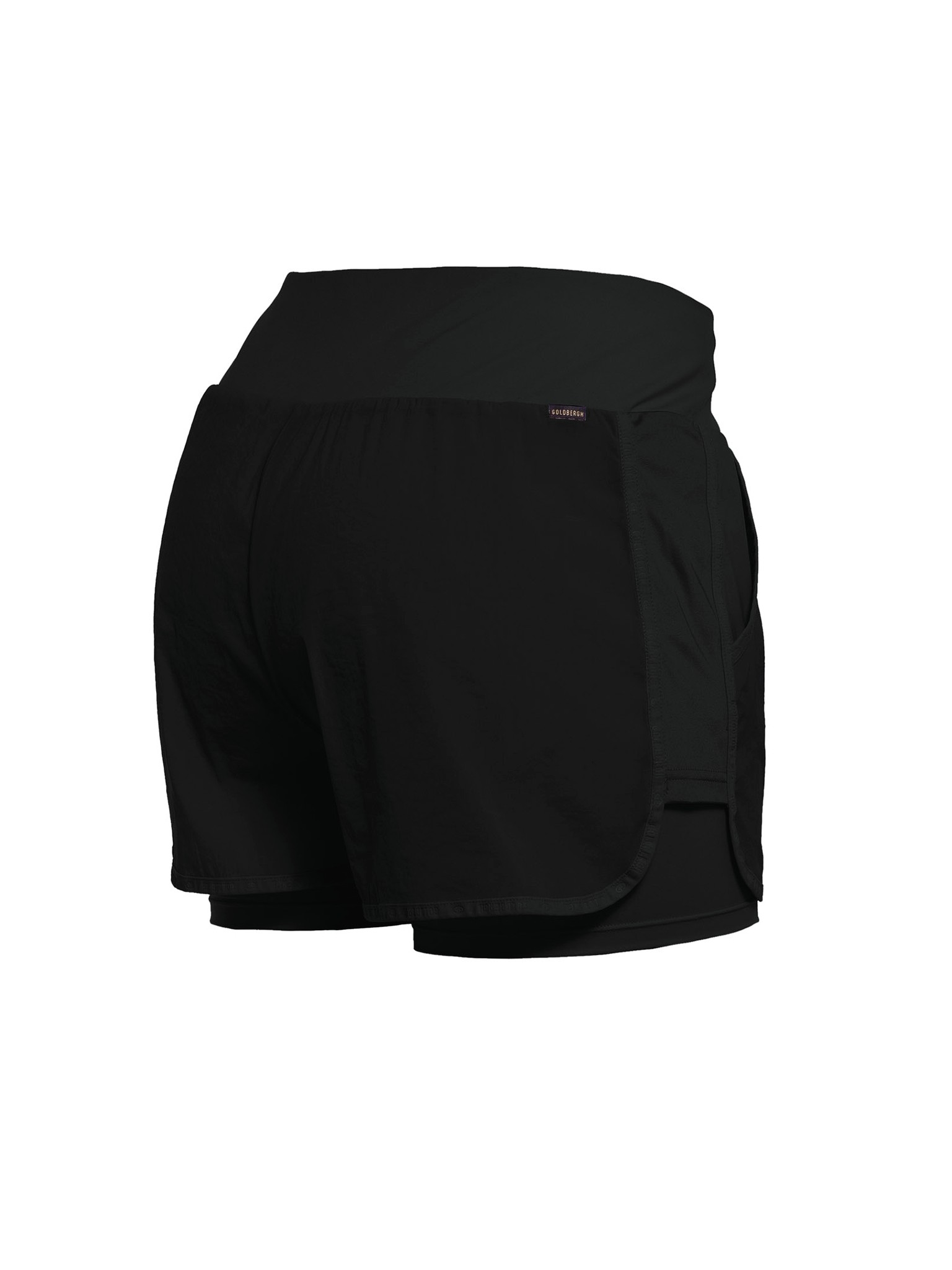 Praktické a štýlové športové kraťasky Goldbergh Miami skladajúce sa z dvoch častí. Polopriehľadná vrchná látka voľnejšieho strihu a upnuté elastické spodné krať…
