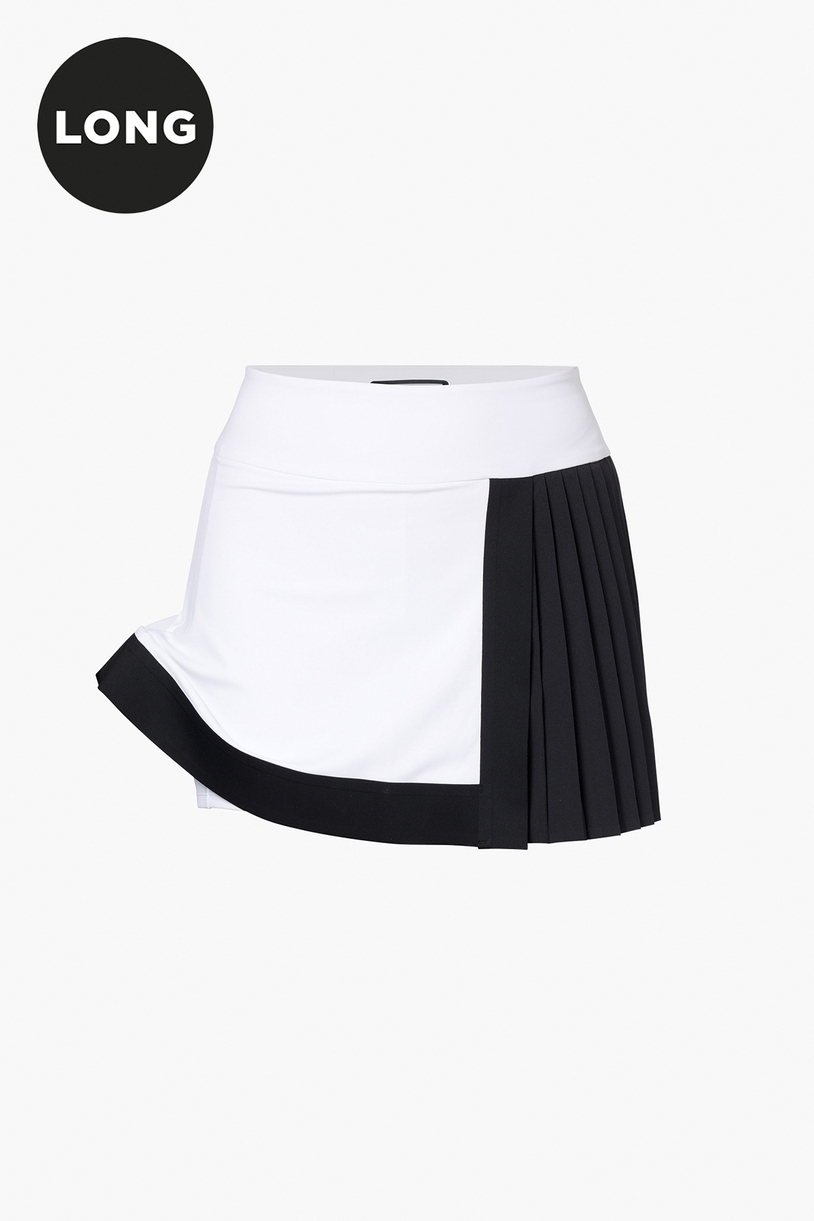 Dámska športová sukňa AXELLE LONG je štýlový a funkčný kúsok určený pre aktívne ženy. Vďaka regular fit vonkajšej sukni a priliehavým vnútorným šortkám poskytuje ideálnu kombináciu komfortu, podpory a voľnosti pohybu. Predĺžená dĺžka o 4 cm zabezpečuje ešte väčšie krytie a pohodlie pri pohybe. Sukňa je vyrobená z elastického materiálu Powerstretch interlock, ktorý je priedušný, rýchloschnúci a efektívne odvádza vlhkosť. Dizajn oživuje kontrastný panel pozdĺž lemu a bokov a elegantný plisovaný panel na ľavej strane, ktorý dodáva modelu dynamický a ženský vzhľad. Čisté línie zabezpečuje bonded zakončenie. Praktické detaily zahŕňajú vnútorné vrecko na kľúče vo vnútri pásu a powermesh vo vnútri pásu pre lepšiu podporu a stabilitu pri pohybe. Dizajn dopĺňajú tónované gumené logá GB na zadnej strane pásu a na ľavej nohavici vnútorných šortiek, ako aj tkaný štítok značky na boku.