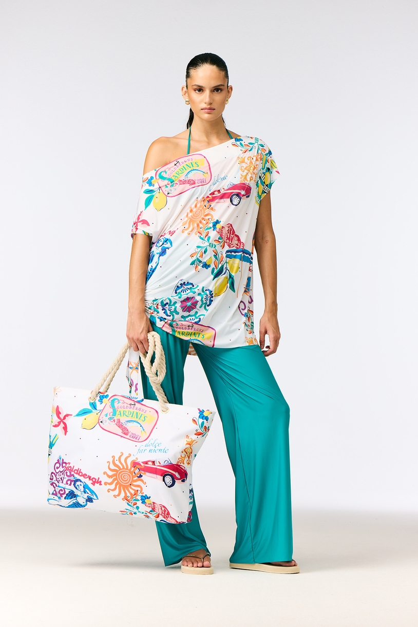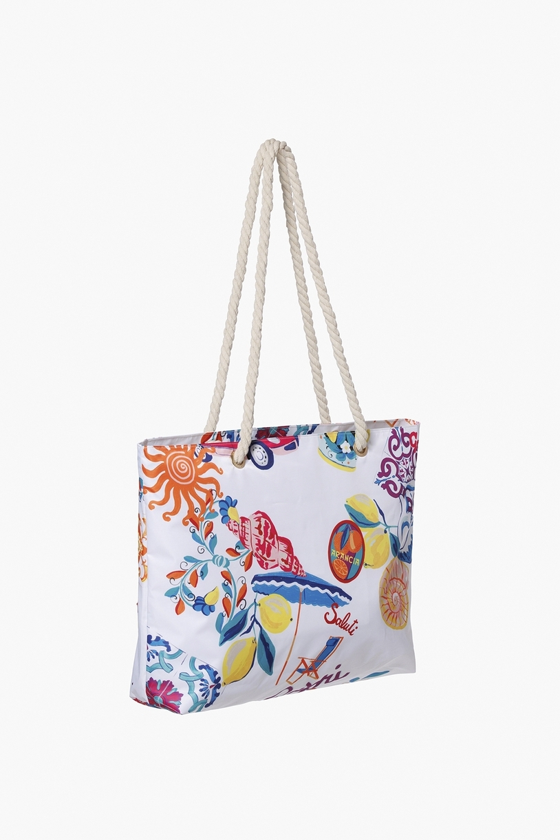 Shopper taška ANGELA zaujme na prvý pohľad svojou celoplošnou Capri potlačou, ktorá jej dodáva svieži a letný charakter. Je navrhnutá tak, aby poskytovala dostatok priestoru na všetky vaše každodenné potreby – od osobných vecí až po plážové alebo športové doplnky. Taška je vybavená praktickým zapínaním na zips v hornej časti, ktoré bezpečne ochráni obsah. Vo vnútri sa nachádza aj vnútorné vrecko na zips, ideálne na uloženie drobností, telefónu alebo kľúčov. Pohodlné námornícke popruhy umožňujú komfortné nosenie na ramene a zároveň podčiarkujú jej štýlový dizajn. Vďaka odolnému polyesterovému materiálu je taška ľahká, praktická a vhodná na každodenné používanie – či už na nákupy, cestovanie alebo ako doplnok k letnému outfitu.