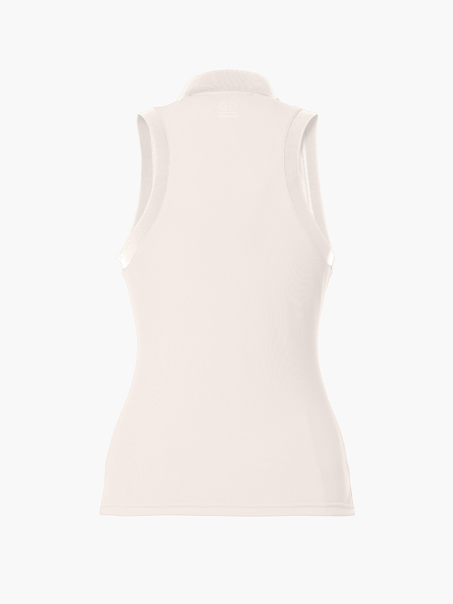 Bezrukávový polo top Caroline je navrhnutý v úzkom strihu, ktorý perfektne obopína telo. Vyrobený je z 2x2 štruktúrovaného rebrovania, ktoré dodáva materiálu pružnosť a komfort. Má tonálne rebrovaný polo golier s V-výstrihom, ktorý zaručuje štýlový vzhľad. Detailom je aj tonálny rebrovaný výstrih a pretekársky chrbtový strih, ktorý zvýrazňuje športový charakter topu. Na zadnej strane nájdete tonálnu gumovú potlač loga GB, ktorá dodáva celkovému dizajnu moderný nádych. Na boku je umiestnená tkaná etiketa značky.
