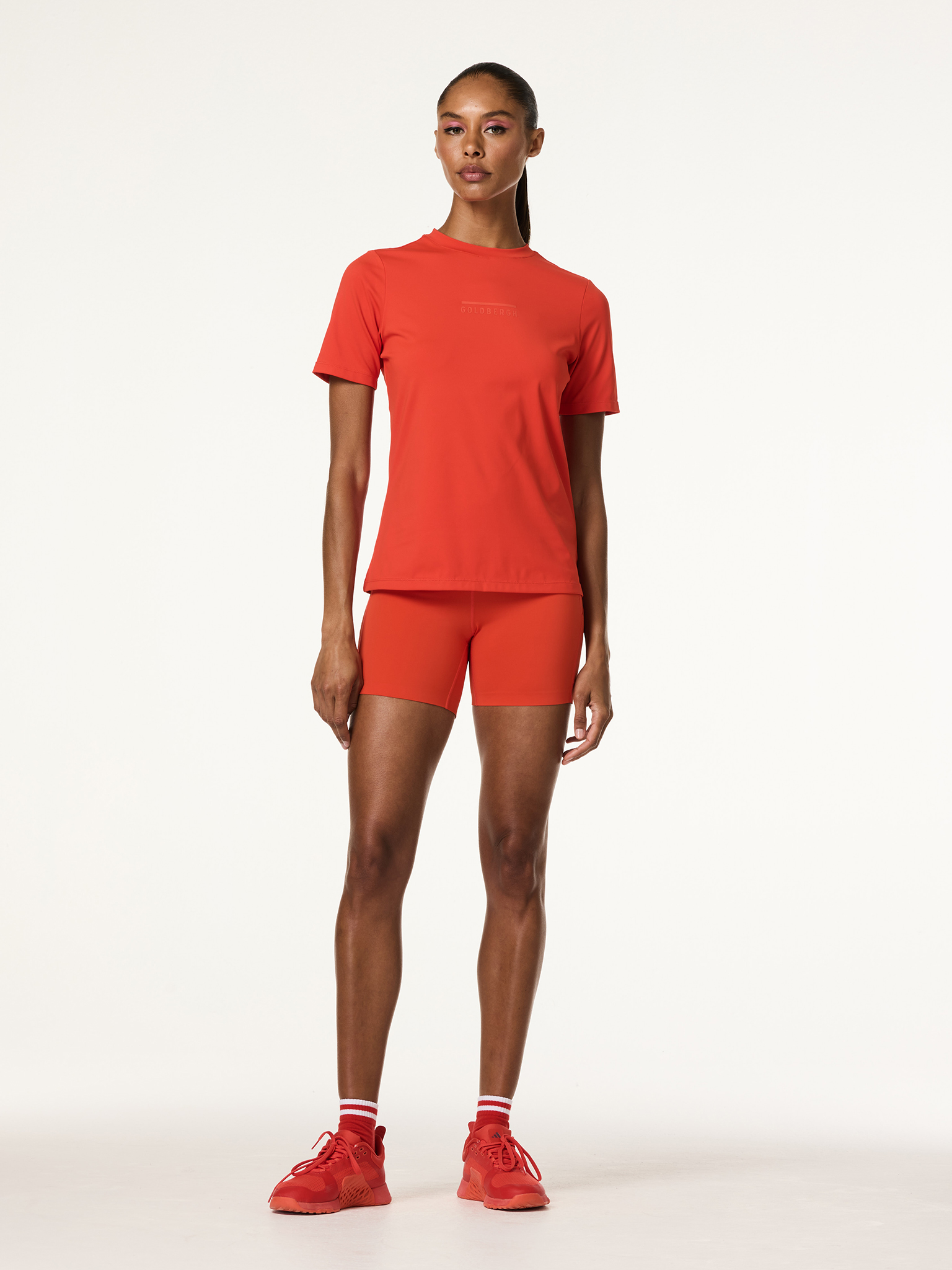 Dámske tričko Isla s krátkym rukávom a logom je ideálnou voľbou pre každodenné nosenie a športové aktivity. Má klasický strih, ktorý poskytuje pohodlie a voľnosť pohybu. Vyrobené z ľahkej džersejovej tkaniny, tričko je príjemné na dotyk a poskytuje maximálny komfort počas celého dňa. Na hrudníku sa nachádza tonálna gumová potlač loga Goldbergh, ktorá pridáva moderný vzhľad, a na zadnej strane je tonálna gumová potlač loga GB. Na boku je umiestnený tkaný štítok s logom značky.