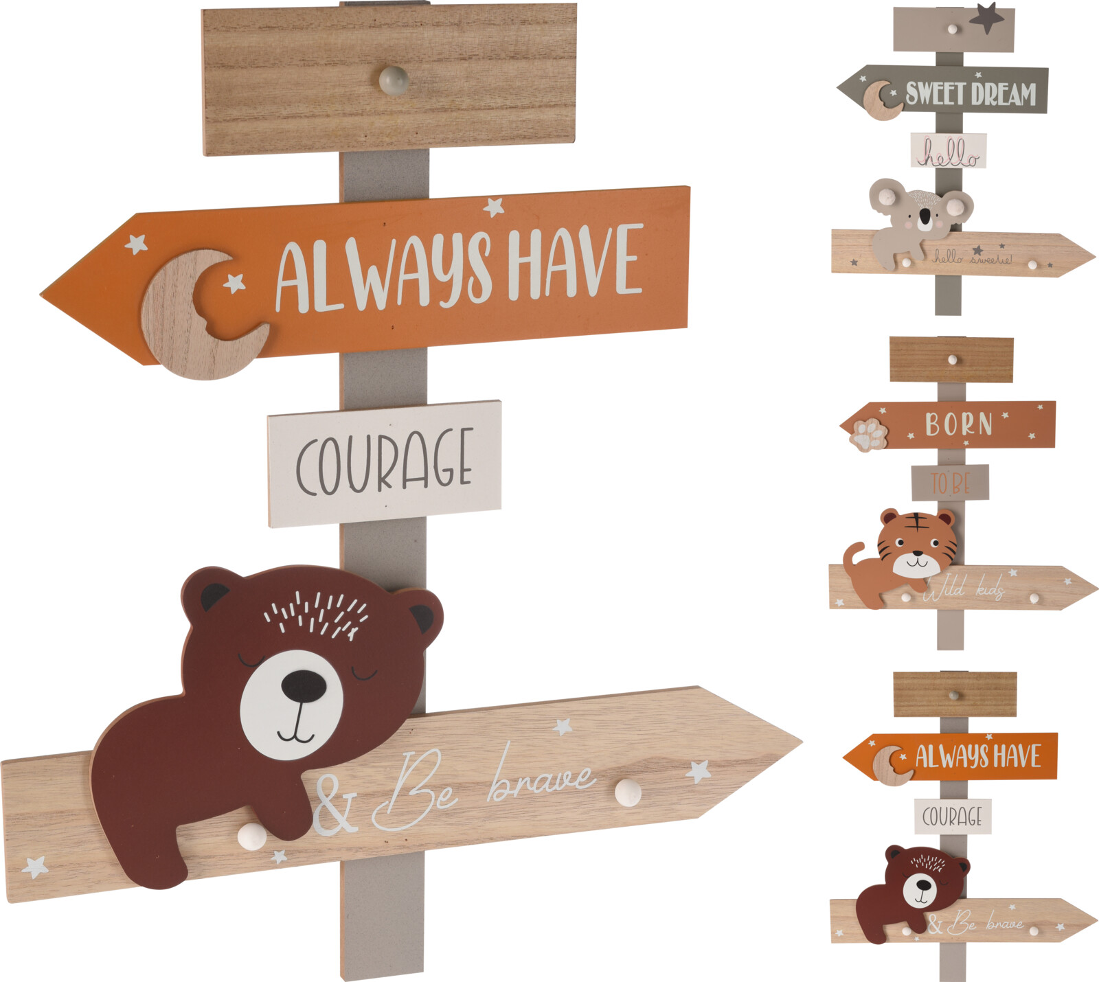 Dětský nástěnný věšák, dřevěný s medvídkem. Krásný dřevěný věšák do dětského pokoje. Nástěnný dětský věšák napodobuje rozcestník a bude krásným dekoračním doplň…