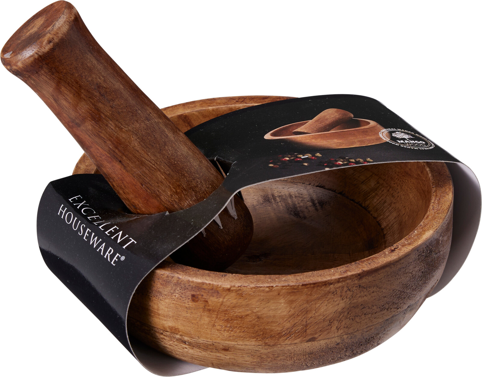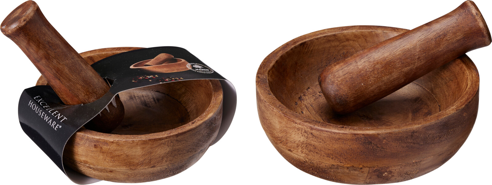 H&L Dřevěný hmoždíř s tloučkem z mangového dřeva (15x15x5 cm)