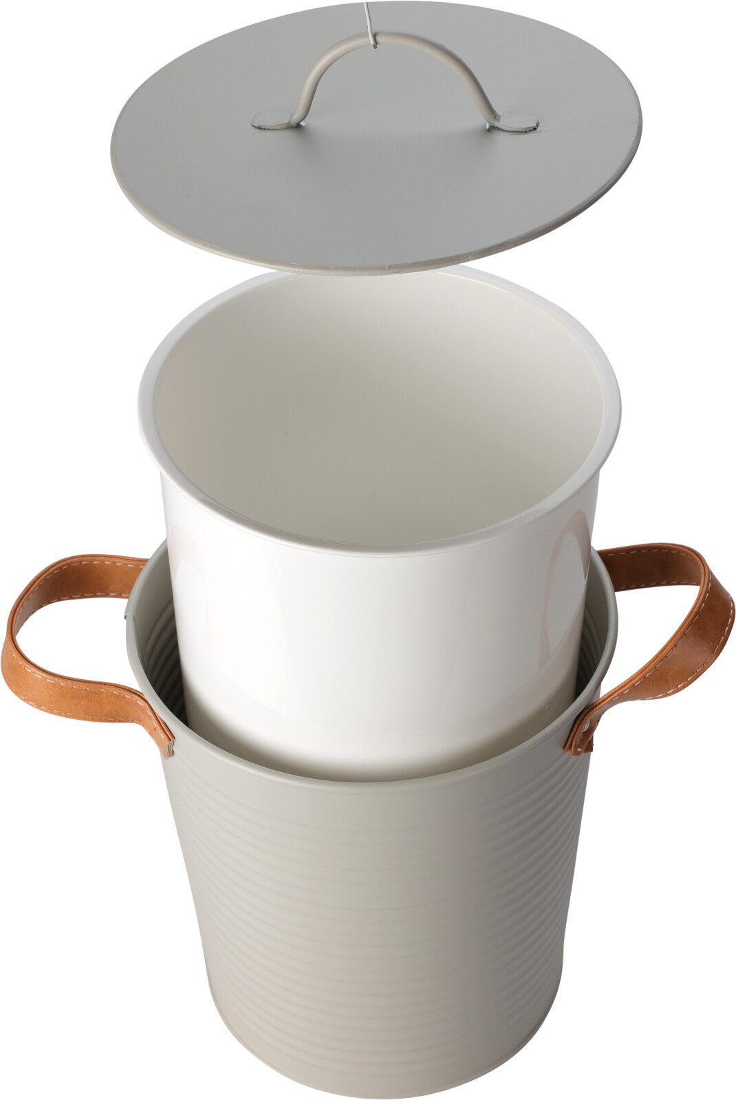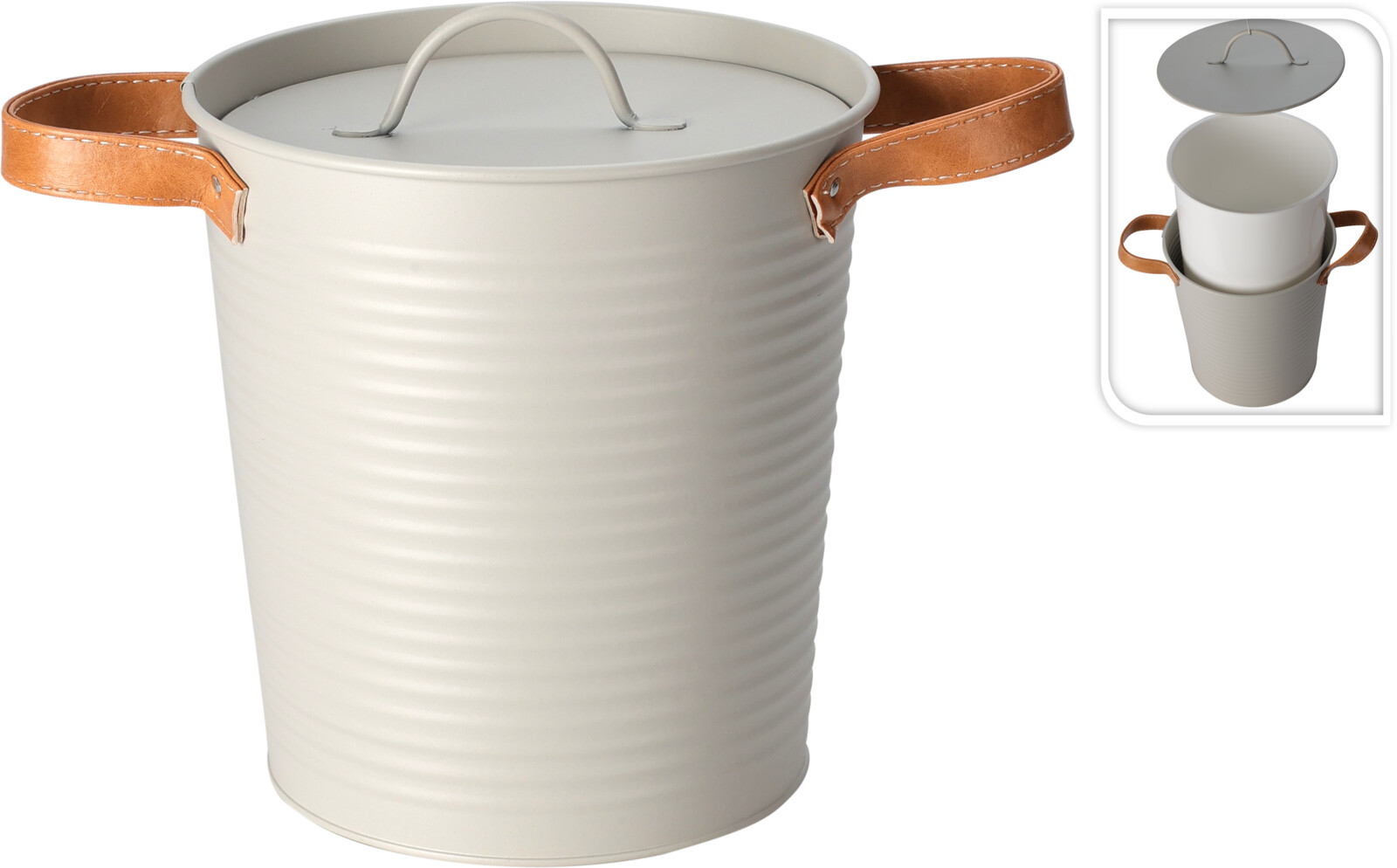 H&L Kovový kbelík na led s koženkovými uchy, Ø 19,5, světlešedý
