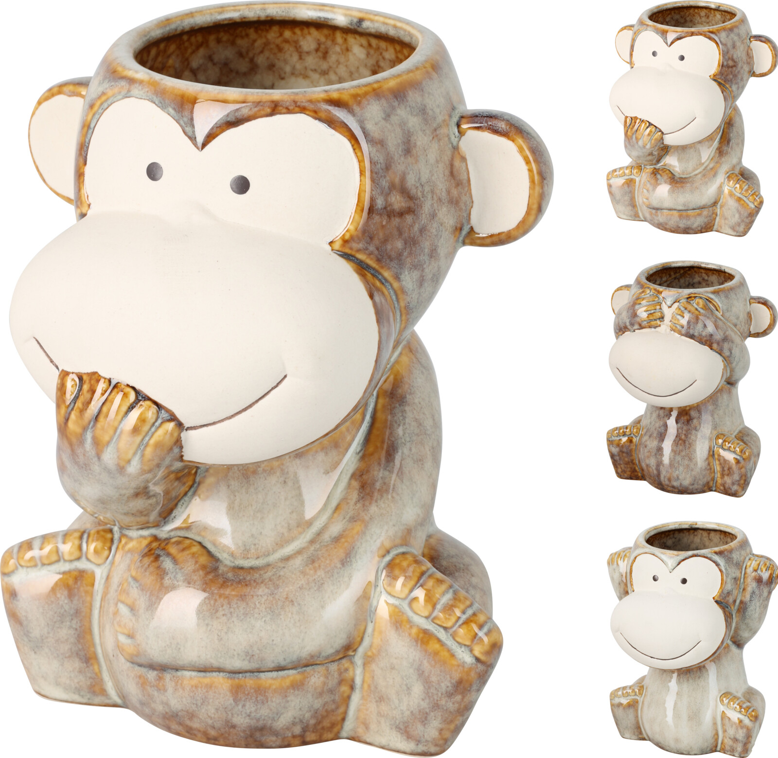 • Porcelánová dekorace s hlubokým poselstvím • Univerzální využití – dekorace, nádoba, květináč • Originální vzhled díky reaktivní glazuře • Kombinovatelná s dalšími figurálními nádobami Opice