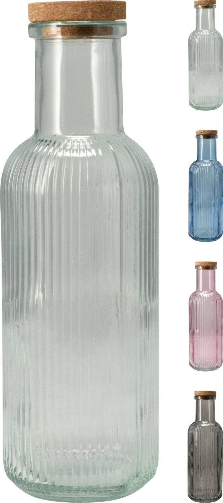 H&L Skleněná láhev s korkovým víčkem, 1l, růžová