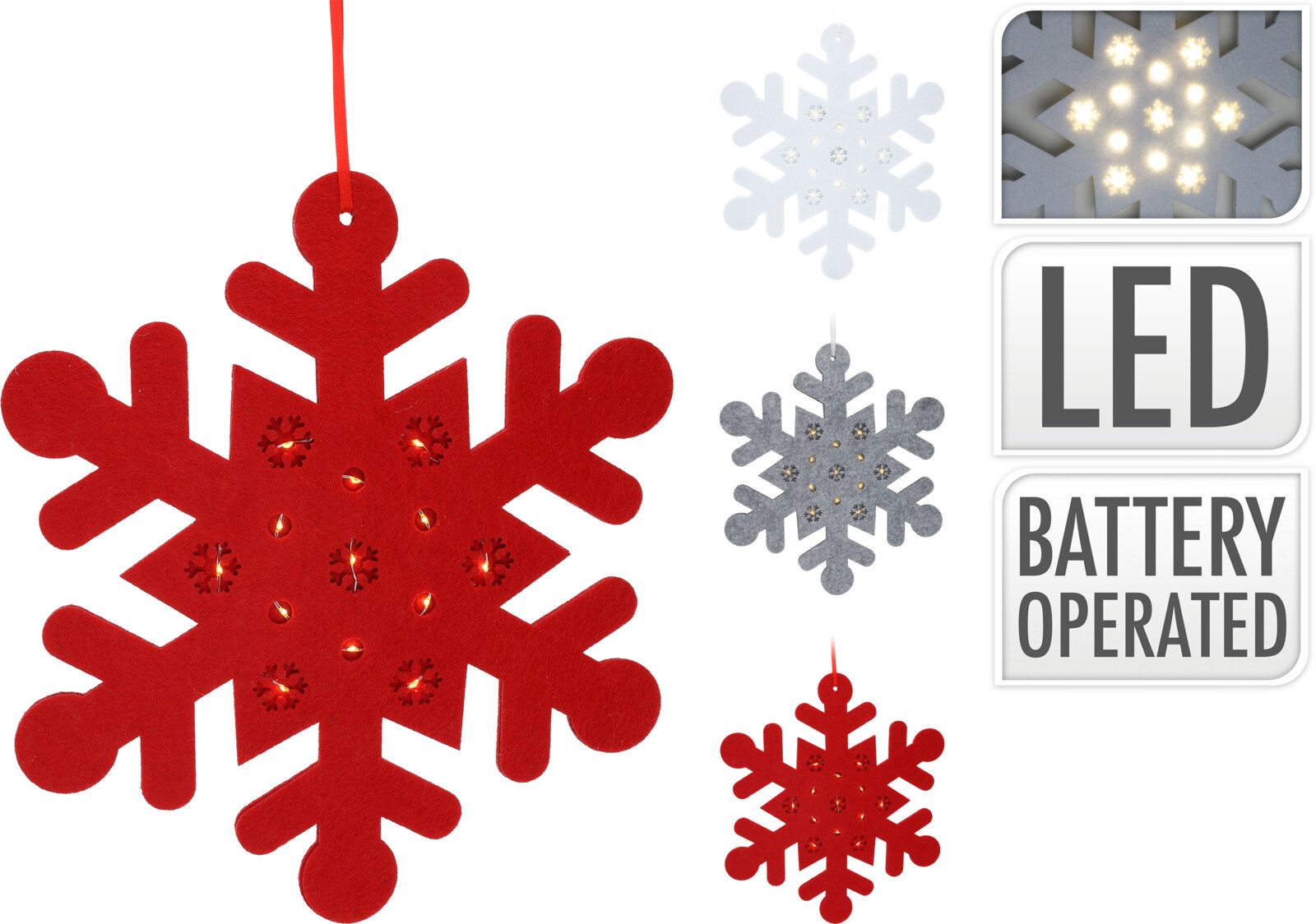 Bílá barva sněhové vločky přináší do vašeho prostoru čistotu a jednoduchost, zatímco LED osvětlení dodává nádech magie. Dostupná také v červené, bílé a stříbrné barvě, můžete si vybrat tu, která nejlépe ladí s vaším vánočním dekorem.
