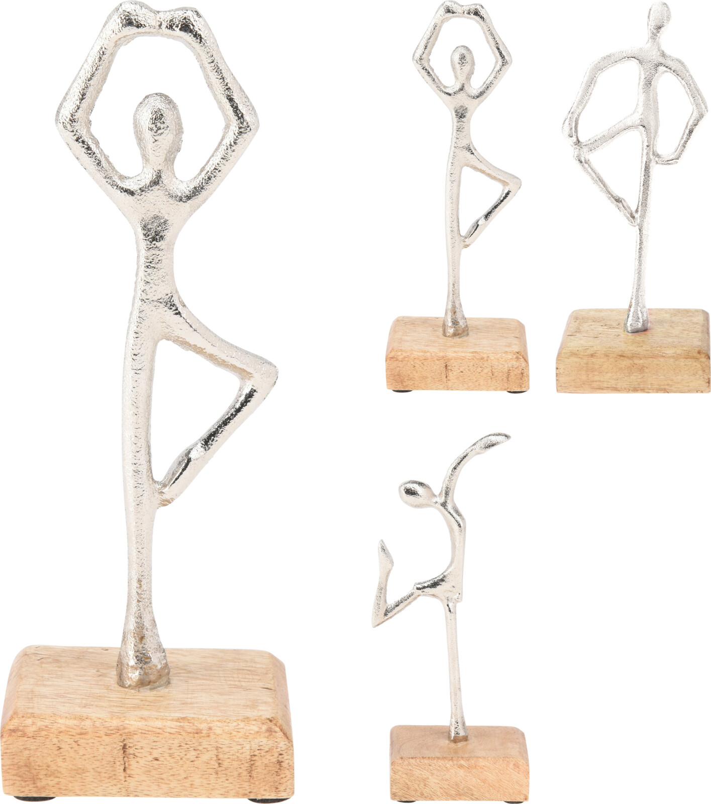 Soška tančící postavy na dřevěném podkladu je elegantním a moderním dekorativním prvkem, který dodá vašemu interiéru styl a dynamiku. Vyrobena z lesklého stříbrného hliníku a mango dřeva, tato soška v taneční pozici A přináší do prostoru nádech pohybu a elegance. Její rozměry 85x60x210 mm ji činí ideální dekorací pro různé povrchy, ať už jde o poličky, komody nebo pracovní stoly.