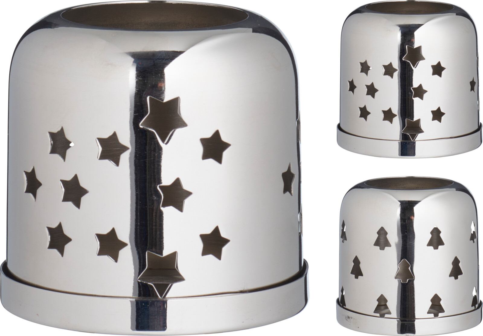 H&L Stříbrný svícen na čajovou svíčku se stromečky (8x8.5 cm), menší