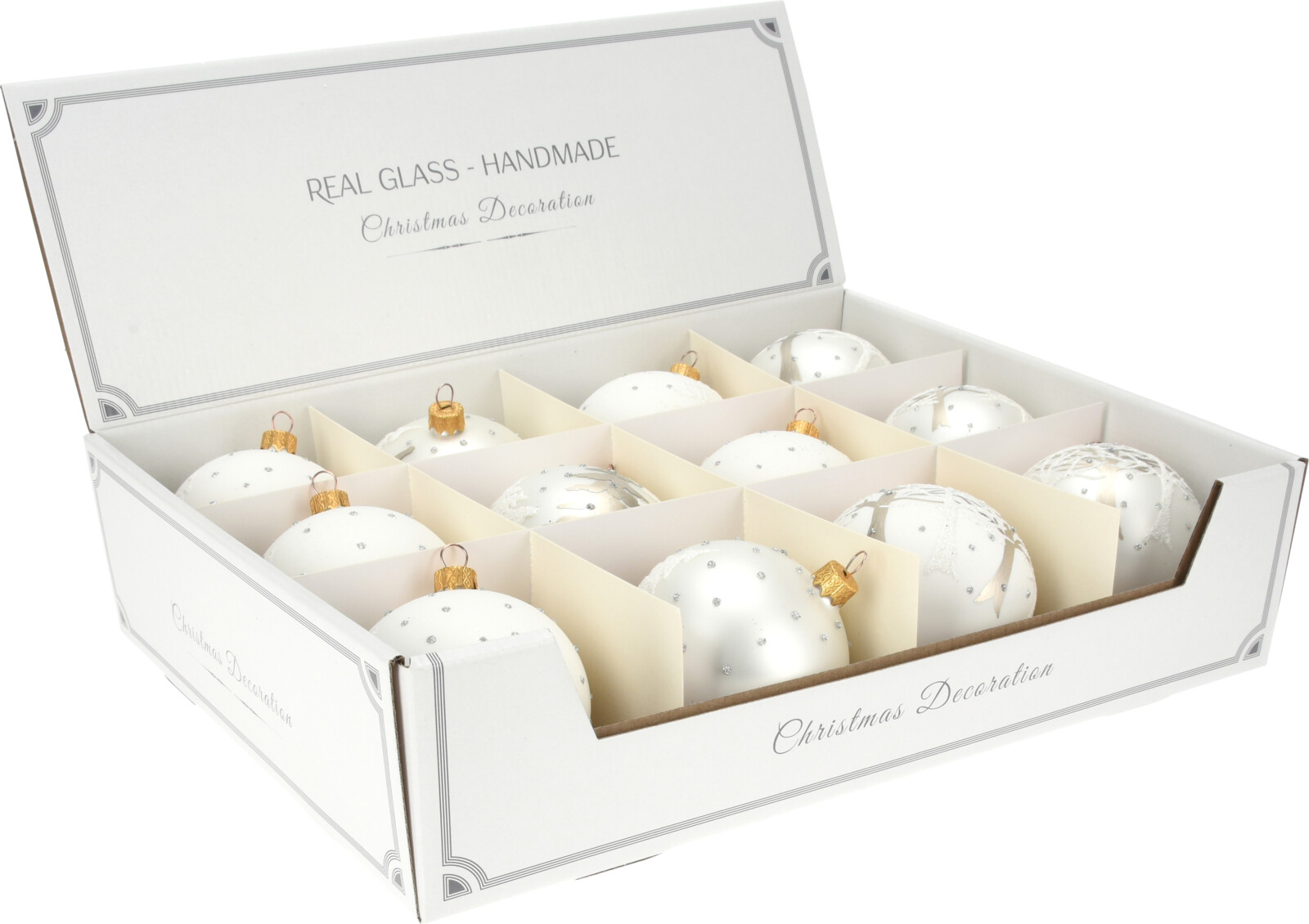 H&L Vánoční koule skleněná s opadaným stromečkem, perleťová (8 cm)