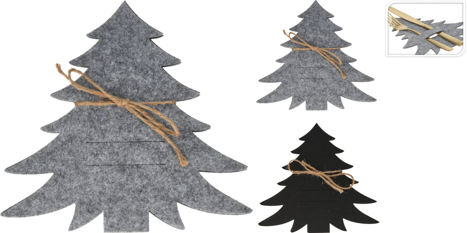 H&L Vánoční podložka na prostírání příborů stromek, sada 4 ks, šedá
