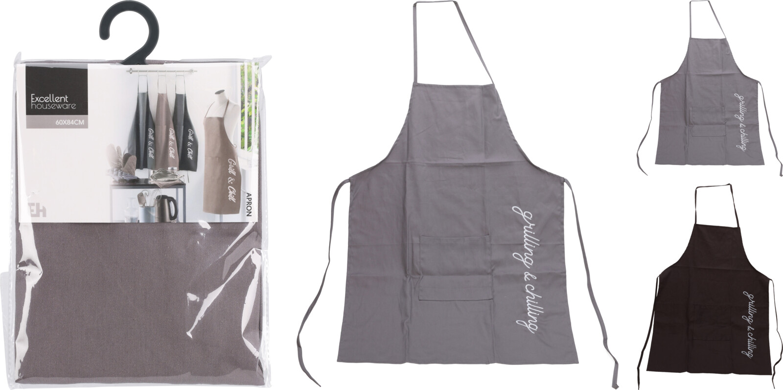 Vyrobena ze 100% bavlny, tato šedá zástěra o rozměrech 60x84 cm je nejen stylová, ale také pohodlná a odolná. Výšivka s nápisy "Grilling a Chilling" dodává zástěře hravý a moderní vzhled, který ocení každý grilovací nadšenec. Bavlněný materiál zajišťuje, že zástěra je měkká na dotek a snadno se udržuje. Ideální pro ochranu oblečení při grilování, zástěra na grilování je praktickým a stylovým doplňkem pro každou venkovní kuchyni.