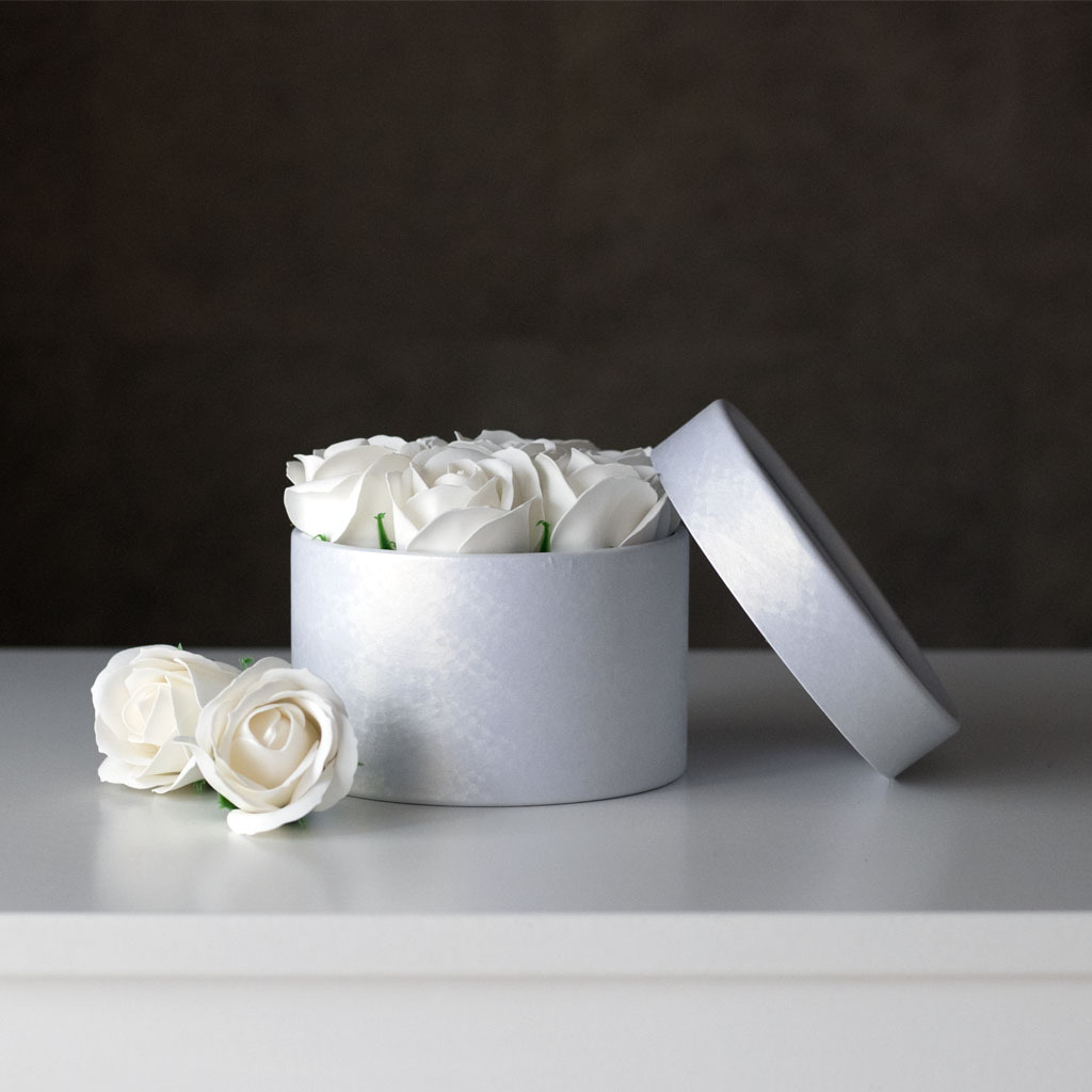 Happylu.cz Mýdlové růže ve flower boxu - bílé růže Zvolte počet růží: 11 růží - Ø 16 cm x 11 cm