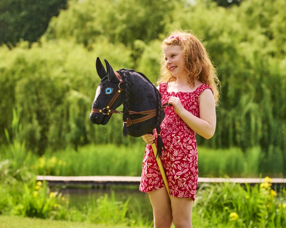 Záhadný jako noční obloha se zářivým měsícem. Takový je realistic Hobby Horse Ponnie Blue Moon s bílou hvězdou a hnědou odepínací ohlávkou s uzdou. Černou hřívu lze česat i zaplétat. Tento nádherný kůň je však také výjimečně rychlý, silný a neúnavný. Svému jezdci se tak stane spolehlivým společníkem pro náročný trénink a ještě náročnější závody.