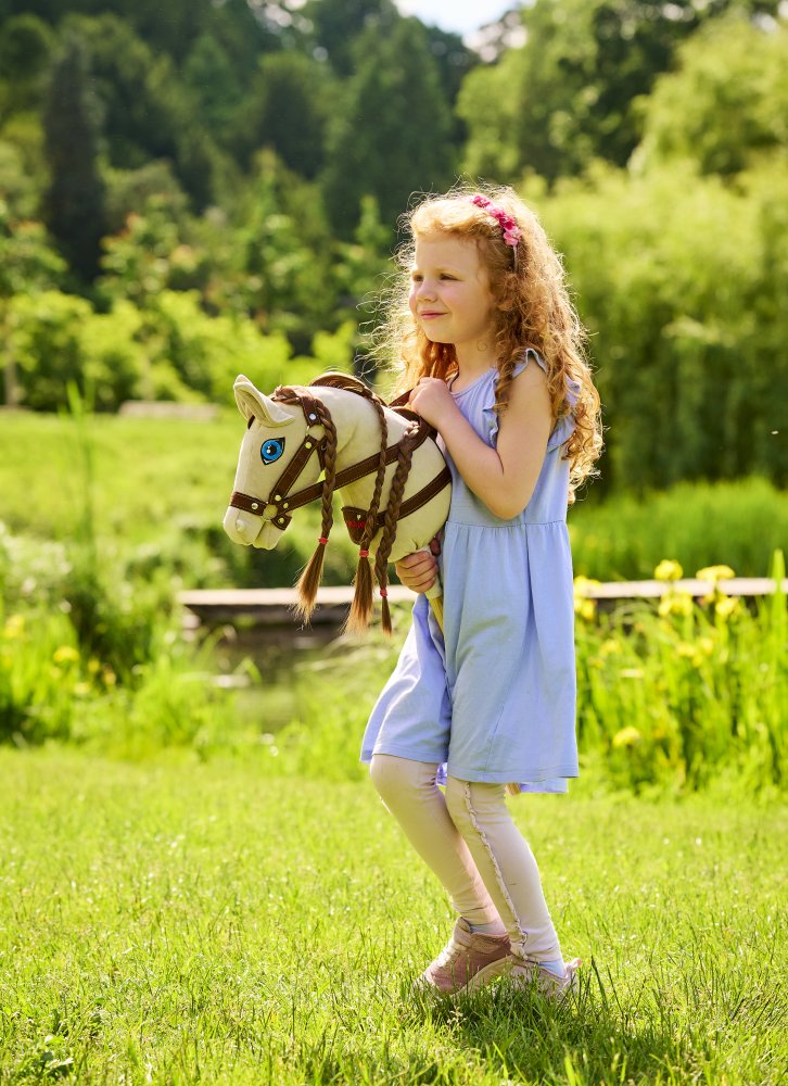 Krémová srst, hnědá hříva a azurově modré oči uchvátí především malé jezdkyně. Houževnatá klisna rychlá jako blesk, Hobby Horse Ponnie Cornelia, zvládne náročné…