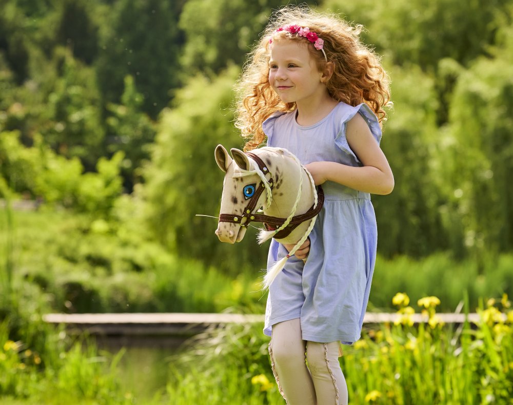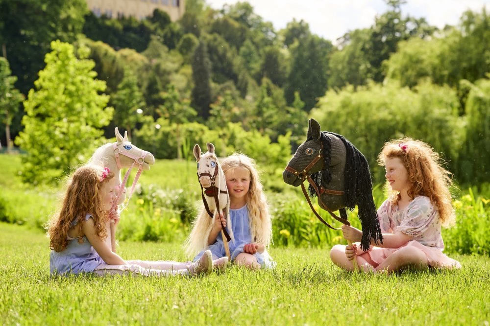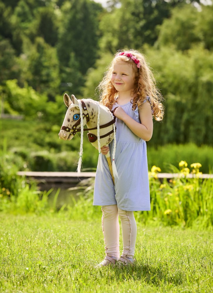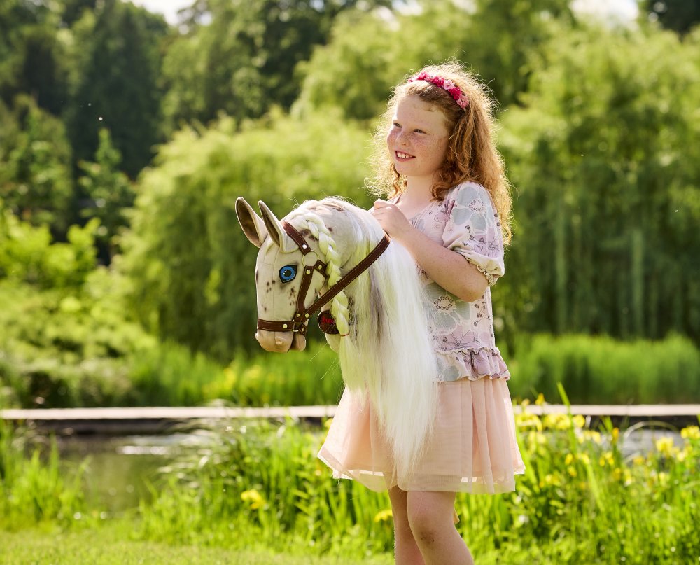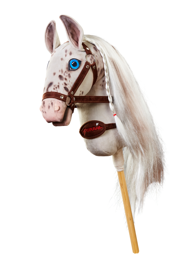 Hobby Horse Stracciatella je veselý a okouzlující kůň na tyči, který si rychle získá srdce každého malého i velkého jezdeckého nadšence. Jeho světlá srst s malovanými hnědými flíčky, milý růžový čumák a nádherná bílo-hnědá hříva dodávají každému tréninku šmrnc. Díky sundavací ohlávce si můžete Stracciatellu snadno upravit podle svého stylu, ať už závodíte v hobby horsingu, překonáváte překážky nebo jen cvičíte doma. Stracciatella je spolehlivý parťák, který vás podpoří při každé výzvě a promění hobby horse dobrodružství ve skutečnou zábavu.