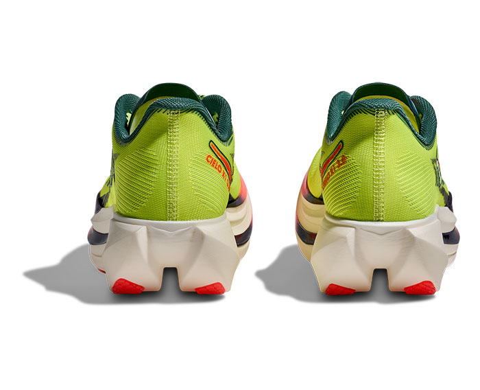 Hoka Cielo X1 3.0 je špičková karbónová bežecká topánka navrhnutá pre pretekárov a výkonnostných bežcov, ktorí chcú posúvať svoje limity a útočiť na osobné rekordy. Tretia generácia prináša ešte lepší návrat energie, vyššiu stabilitu a efektívnejší bežecký krok než jej predchodca. Optimalizovaná karbónová doska zabezpečuje plynulý prechod z dopadu do odrazu a agresívny, ale kontrolovaný odraz. Dvojvrstvová PEBA pena v medzipodrážke ponúka mäkký dopad, vysokú pružnosť a pomáha udržať vysoké tempo aj v závere pretekov. Výrazný rocker profil podporuje prirodzený bežecký štýl a urýchľuje odraz. Ultraľahký, jednovrstvový zvršok dokonale obopína chodidlo, je maximálne priedušný a znižuje celkovú hmotnosť topánky na minimum. Pre istotu pri vysokých rýchlostiach je topánka vybavená rozšírenou platformou, technológiou Active Foot Frame™ a upravenou geometriou päty, ktoré zvyšujú stabilitu bez obmedzenia dynamiky. Strategicky umiestnená guma na podrážke poskytuje spoľahlivú trakciu na asfalte.