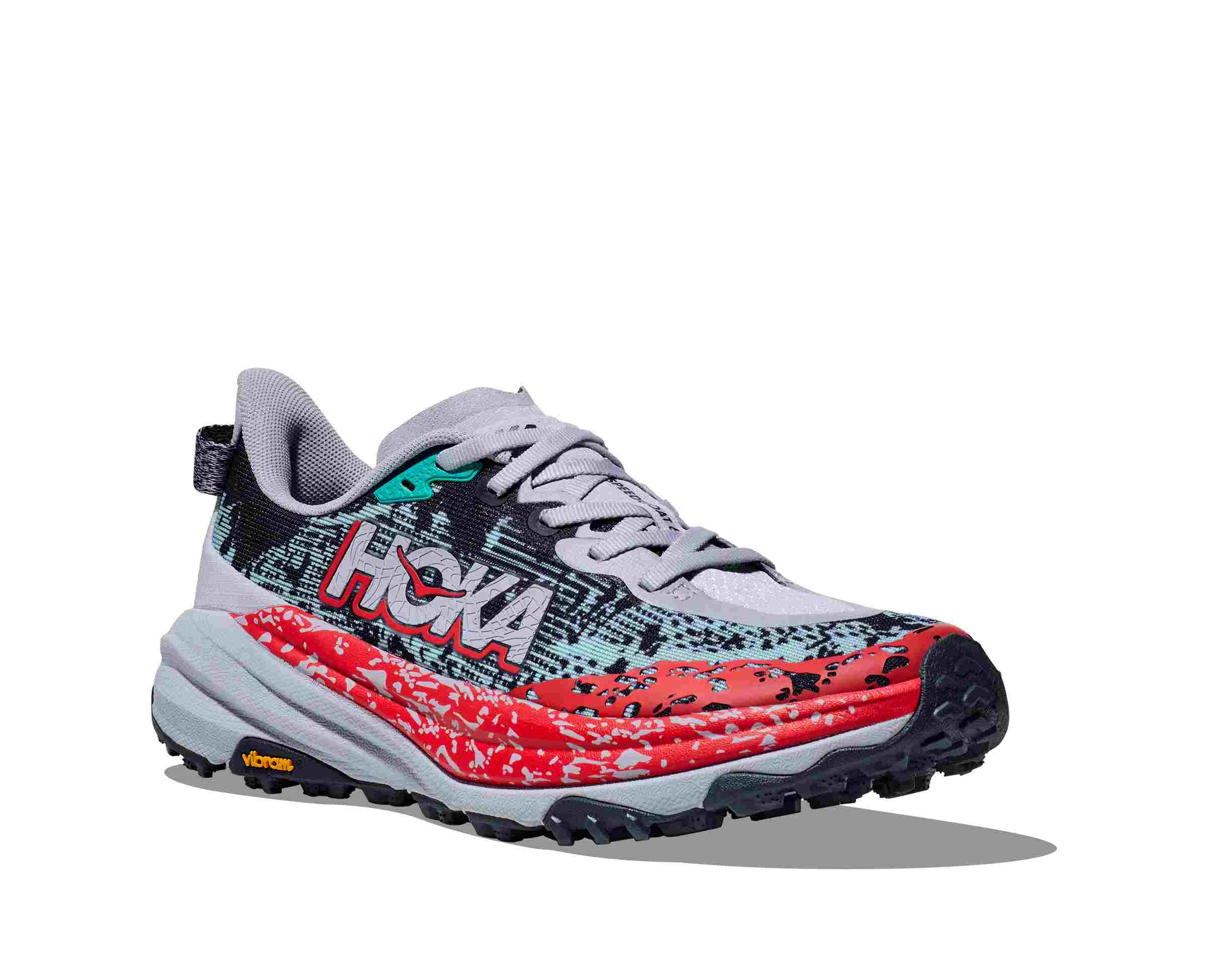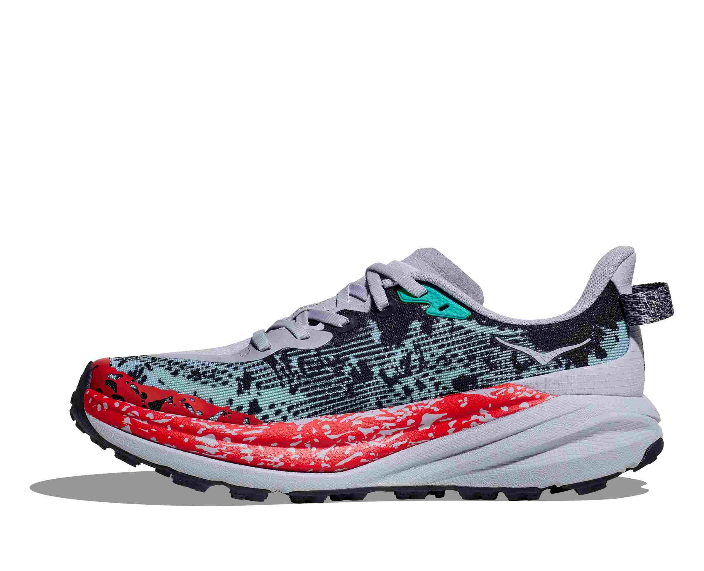 Vysoko odpružená trailová obuv Hoka Speedgoat 6 s ľahšou konštrukciou a väčšou trakciou ako kedykoľvek predtým je navrhnutá do technickejšieho terénu. Podrážka je vylepšená technológiou Vibram® Megagrip s konštrukciou Traction Lug pre lepšiu priľnavosť na sypkom podklade, takže si môžete užívať dobrodružstvá na vysokohorských, odľahlých a náročných chodníkoch. Speedgoat 6 si zachováva rovnakú výšku podrážky a tvar kolísky Meta-Rocker™, čo môže pomôcť najmä pri vyšších rýchlostiach, keď vám umožní ľahší prechod z nárazu do odrazu. Využíva ľahšiu zmes materiálov medzipodrážky a hrubšiu, dvojvrstvovú sieťovinu, ktorá dodáva pocit istoty v akomkoľvek teréne. Prepracovaný zvršok je navrhnutý tak, aby poskytoval viac priestoru pre vaše nohy pri pohybe v teréne.