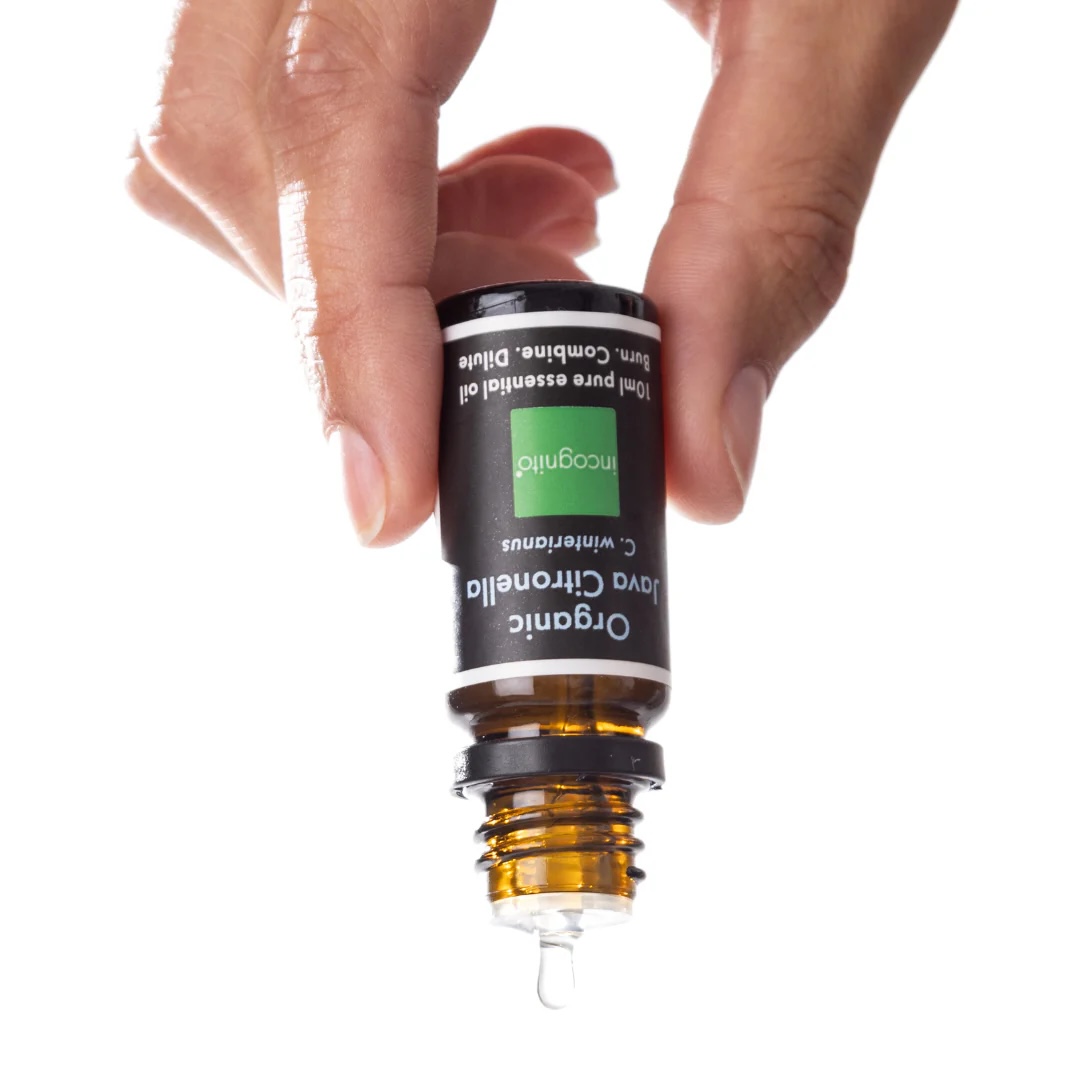 Přidáním do jakéhokoli krému, šamponu nebo jiného přípravku bez zvýšíte svou ochranu proti hmyzu. Pro ochranu před komáry a hmyzem kdekoli na světě použijte Incognito® repelent sprej, tělové mléko, opalovák a/nebo kuličkový deodorant. Kromě toho můžete citronelový olej přidat do základního oleje pro masáže nebo koupele.
