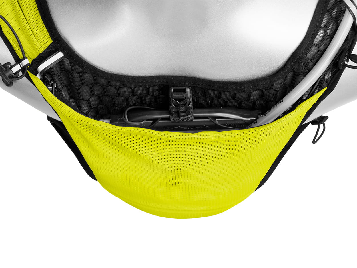 - 2x 600ml hydratačné vrecká + elastické kompresné šnúrky s automatickým zámkom. Sedí vysoko pre okamžitý a ľahký prístup.