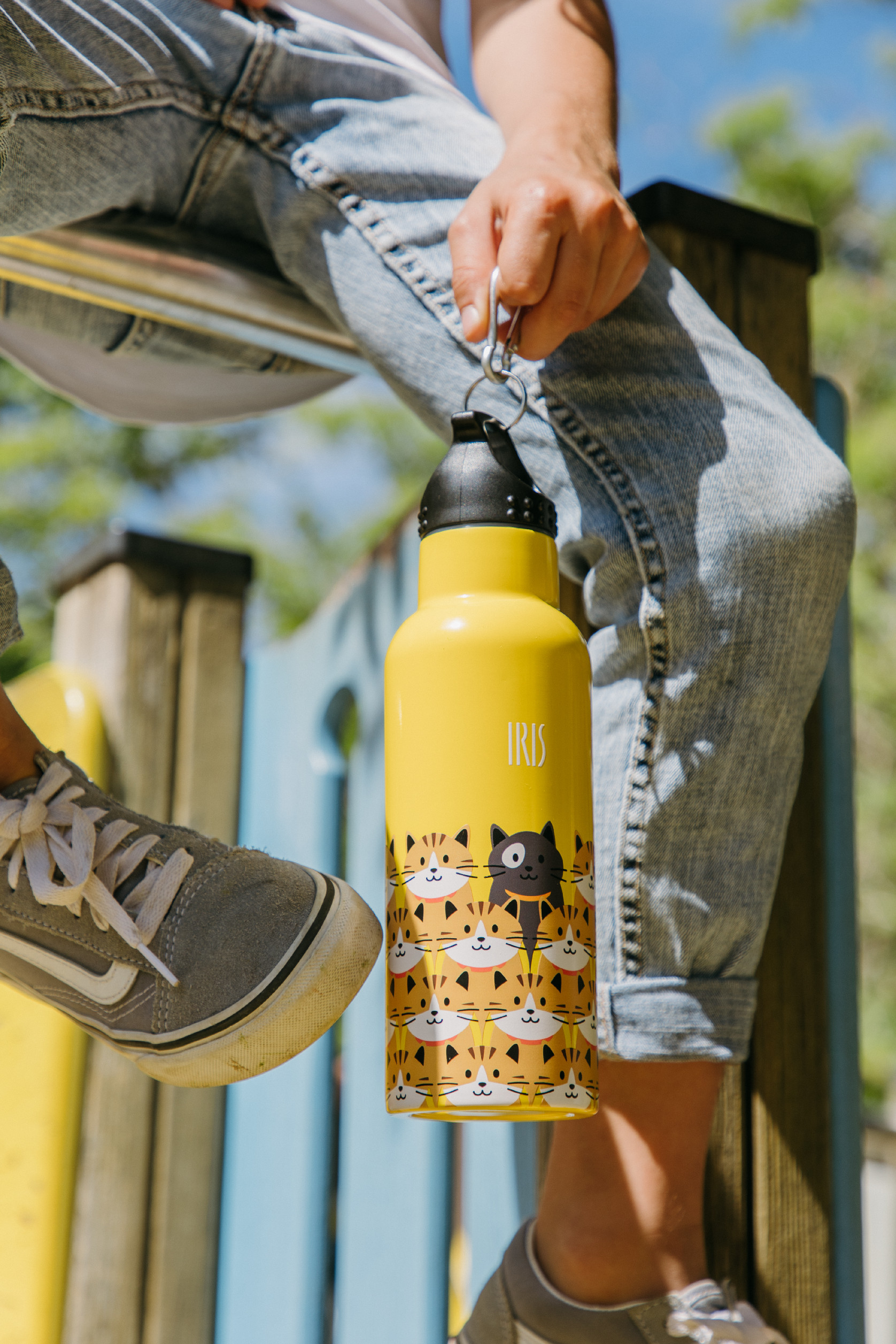 Ideální na cesty, do školy, na sport. Termoska má šroubovací uzávěr s možností připevnění na aktovku, batoh nebo zavěšení na kolo.