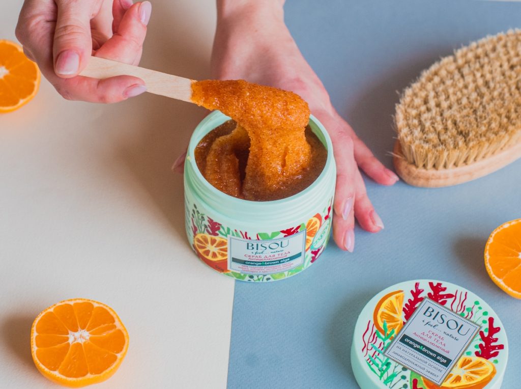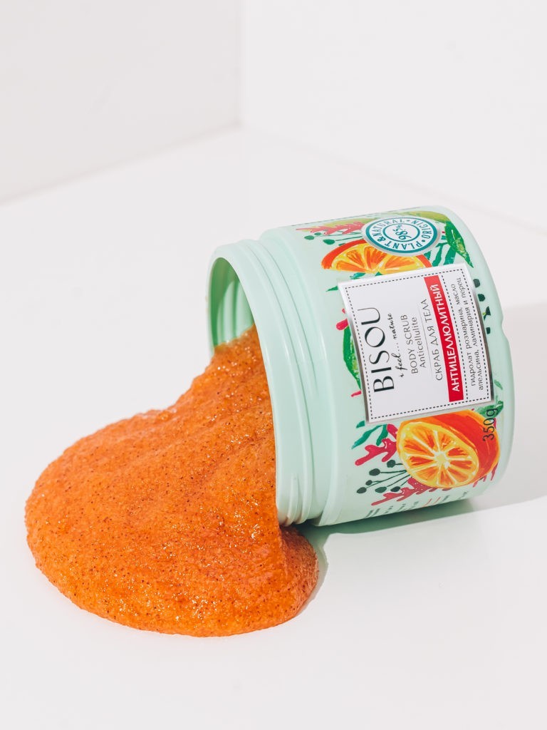 Pečujte o svou pokožku a zbavte se „pomerančové kůry“. Vyzkoušejte tělový peeling proti celulitidě Bisou. 99% produktu se skládá z přírodních složek. Má vlastnosti, které hloubkově čistí pokožku. Podporuje boj proti celulitidě. Odstraňuje toxiny a nečistoty z pokožky a zlepšuje její metabolismus. Má mimořádně příjemnou vůni zralého pomeranče. Může být použit pro všechny typy pleti. Kokosový olej má vlastnosti, které zlepšují metabolismus v pokožce. Podporuje rychlejší odbourávání tuků. Má aromaterapeutický účinek. Extrakt ze sladké pomerančové kůry má tonizující účinek. Vyrovnává barvy pokožky a hluboce ji zvlhčuje. Má změkčující účinek. Odstraňuje z pokožky nečistoty a toxiny. Podporuje boj proti celulitidě. Zpomaluje proces stárnutí pokožky. Extrakt z hnědých řas zlepšuje mikrocirkulaci a má lymfatický účinek. Semena mletého cedru vyhlazují pokožku. Elastin pomáhá udržovat správnou hydrataci a pevnost pokožky. Kolagen zabraňuje nadměrné ztrátě vody z pokožky a stimuluje její obnovu buněk.
