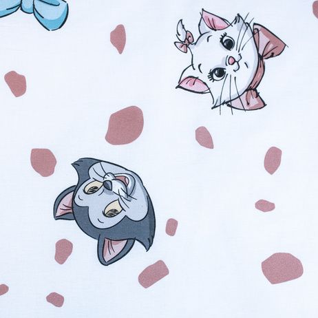 Povlečení má oboustranný potisk – každá strana má jiný motiv, díky tomu můžete snadno měnit vzhled postele podle nálady. Na přední straně povlečení je kočička Marie a její přátelé. Zadní strana je bílá s motivem kočiček.