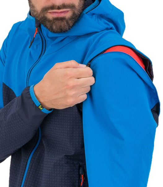 Hybridná bunda Karpos Lede Convertible s odnímateľnými rukávmi, ktorá ponúka zvýšenú priedušnosť pri vysoko intenzívnej aktivite a väčšiu ochranu, keď zastavíte. Bunda Lede Convertible Jacket vyrobená s hybridnou konštrukciou kombinuje tkaniny a technológie v bezkonkurenčnej zmesi. Tkanina K-Shell na hlavnom tele poskytuje ochranu pred vetrom, zatiaľ čo česané vnútro ponúka správny stupeň tepla. Kapucňa a rukávy sú vyrobené z pružnej tkaniny odolnej voči opotrebovaniu. Pre väčšiu priedušnosť a lepšie prispôsobenie sú bočné panely, spodná časť odevu a manžety rukávov z ľahkej, pružnej látky. Perfektná bunda, keď potrebujete ďalšiu vrstvu tepla.