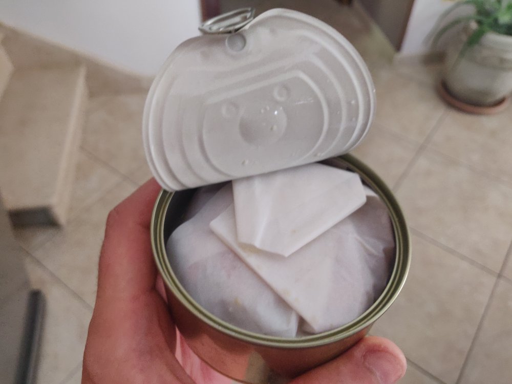 | Složení | krabí maso (Paralomis granulosa) (60 % klepet a 40 % masa), voda, sůl, konzervanty: E330, E223 (obsahuje siřičitany), látka zvýrazňující chuť a vůni: E621, stabilizátory: E331, E385. |