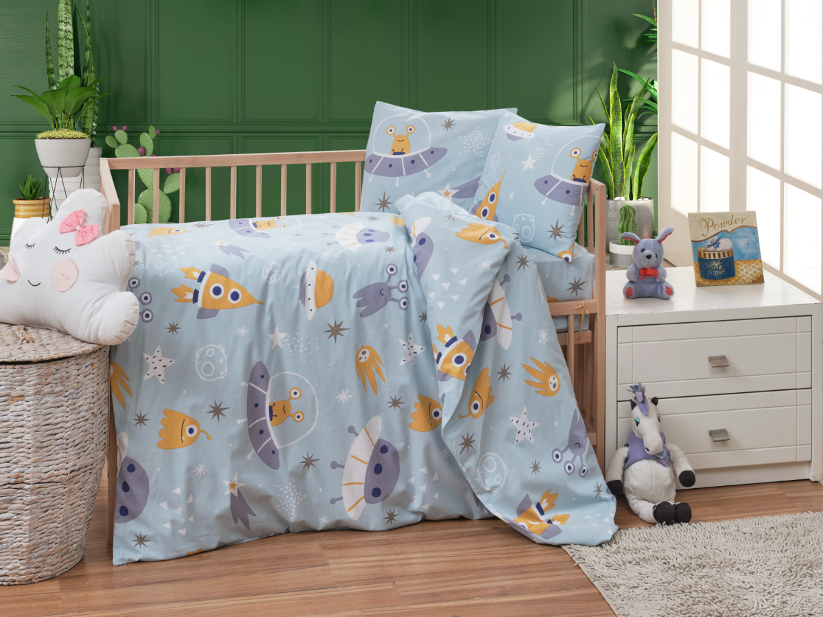 Krepové dětské povlečení 140x200, 70x90cm Vesmírné UFO