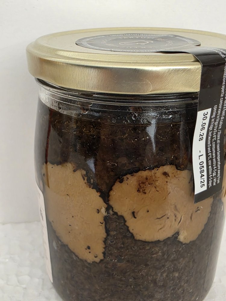 | Složení | žampiony, slunečnicový olej, lanýž letní (Tuber aestivum, Vittad.) 10 %, sůl, aroma, pepř, česnek |
