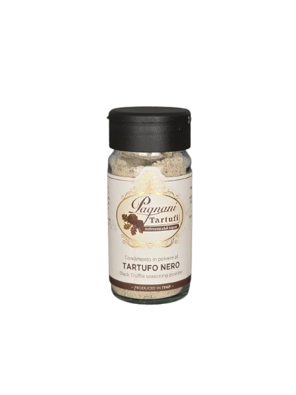Složení: sůl, bramborový škrob, rýžová mouka, sušený černý letní lanýž (Tuber aestivum Vitt.) 5% což odpovídá 25% čerstvého lanýže, sušené žampiony 3 %, aroma.
