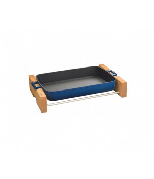LAVA METAL Litinový pekáč 22x30cm s dřevěným podstavcem - modrý