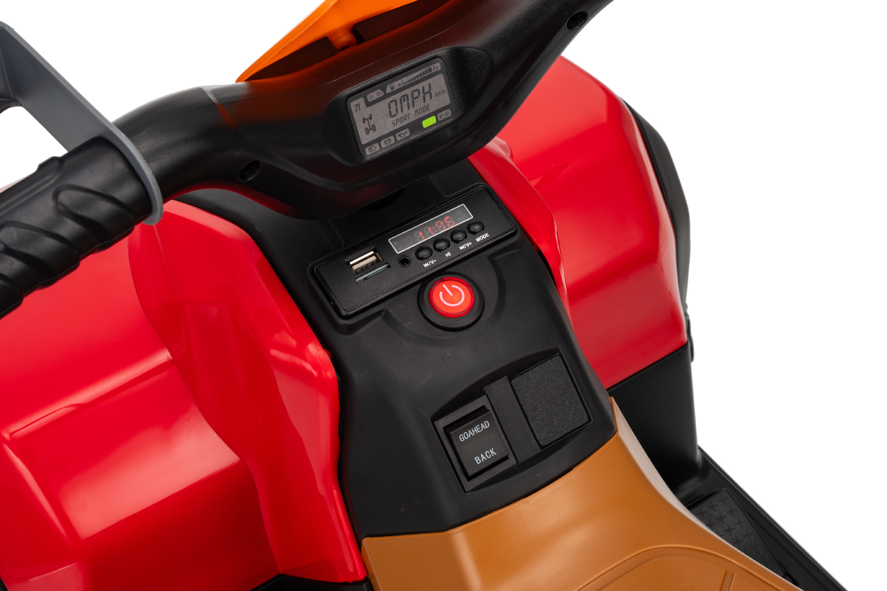 Mezi vybavení patří hudební panel se vstupy USB a MP3. Čtyřkolka má přední a zadní LED světla, umožňuje jízdu ve všech směrech a její nosnost je do 30 kg.