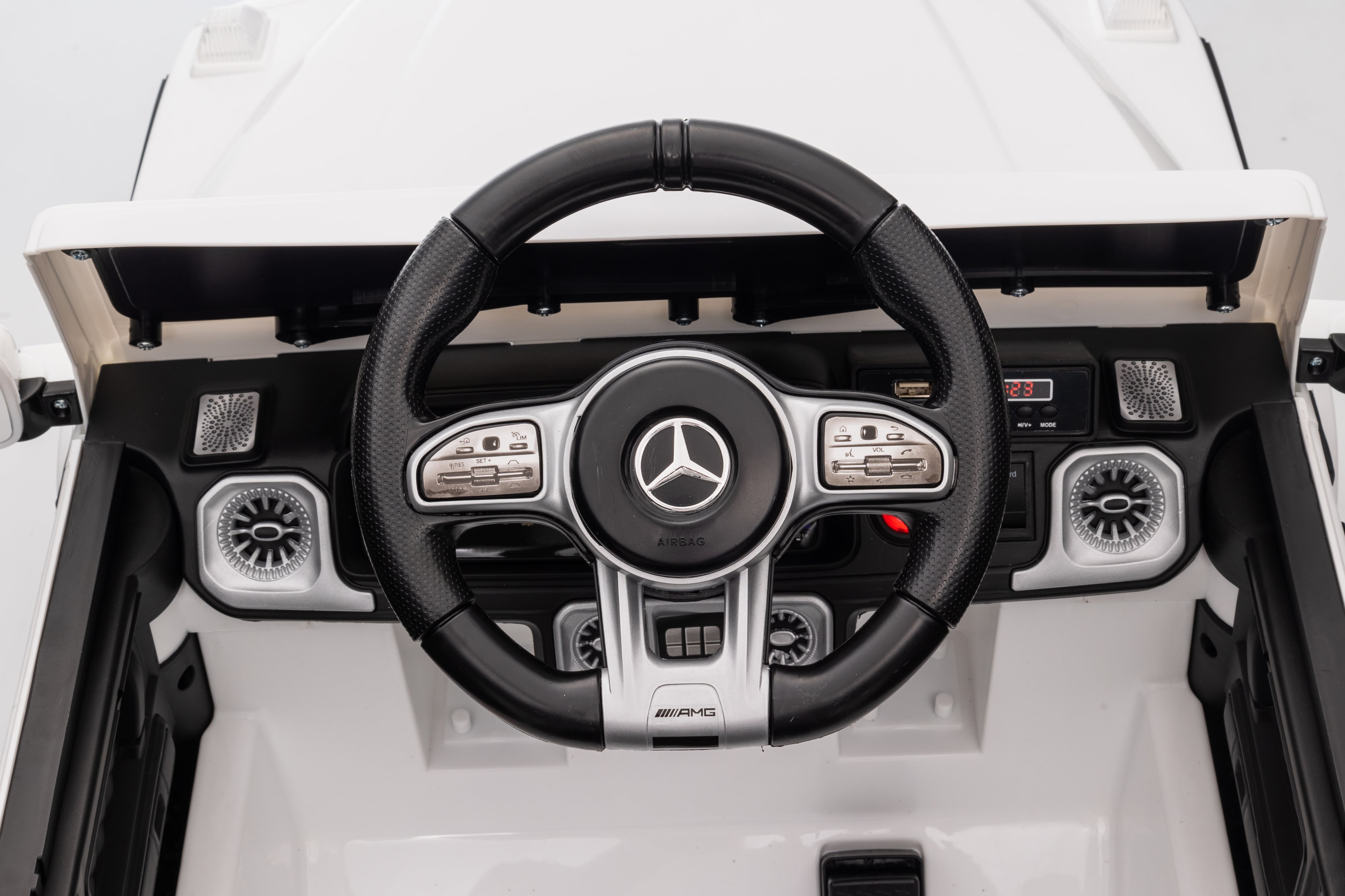 Dětské elektrické autíčko Mercedes Benz G63 cabrio bílé je ideální volbou pro malé nadšence luxusních vozů. S baterií o kapacitě 12V 4,5Ah a 2.4 GHz ovladačem p…