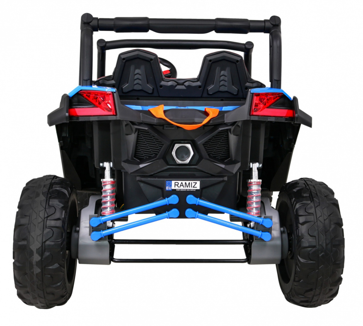 Dětská elektrická Buggy UTV-MX se čtyřmi výkonnými elektrickými motory 60W a baterií 24V 7Ah. O pohodlnou jízdu se postarají velká pěnová EVA kola, která společně s motory zdolají terén či nezpevněný typ povrchu.