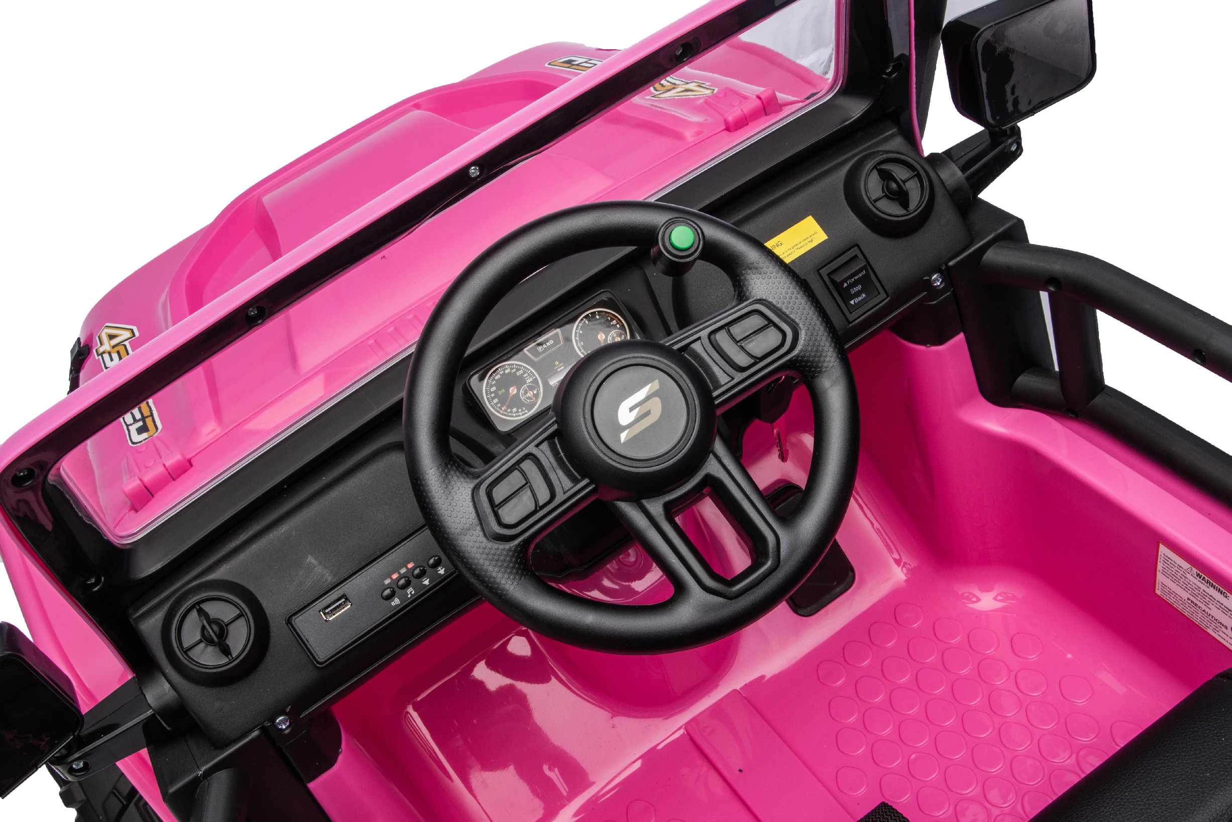 Dítě smí autíčko ovládat zcela samostatně, avšak do jízdy mohou zasahovat rodiče pomocí dálkového ovladače. Dálkový ovladač přijímá frekvenci 2,4GHz, takže při jízdě nedochází k přerušení. Je vybaven bezpečnostním tlačítkem Stop, které ihned zastaví vozidlo a vypne všechny jeho funkce.