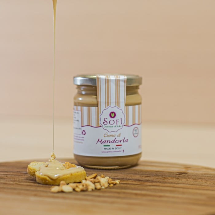 Mandlový krém Tento ručně vyráběný krém z nejlepších mandlí zrajících na sicilském slunci je nezbytností pro milovníky intenzivních a vytříbených chutí.Tip na s…