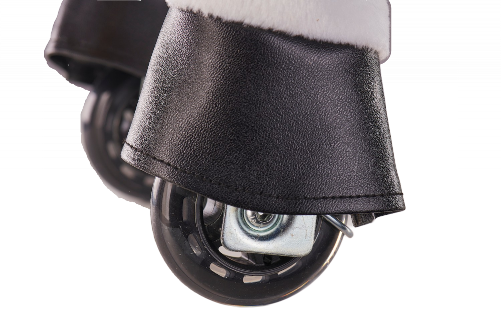 Koník má kolečka z bezbarvé gumy (černý vzhled dodává kolečkům vnitřní černá plastová výztuž koleček), takže nepoškrábe ani nezabarví parkety či plovoucí podlahu. Venku je ideální k ježdění zpevněný rovný povrch, jako je asfalt nebo zámková dlažba.