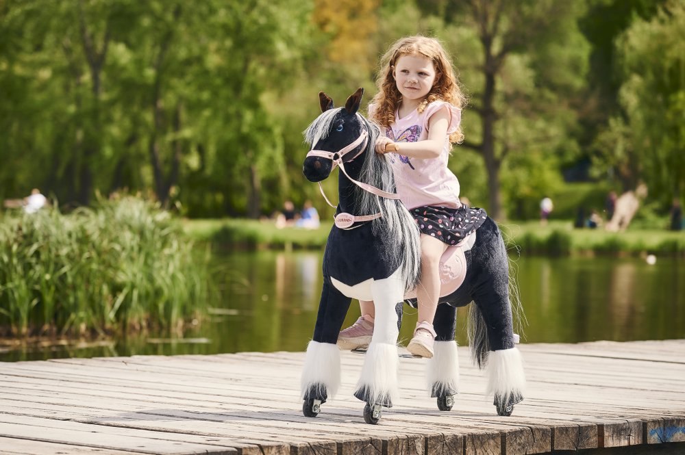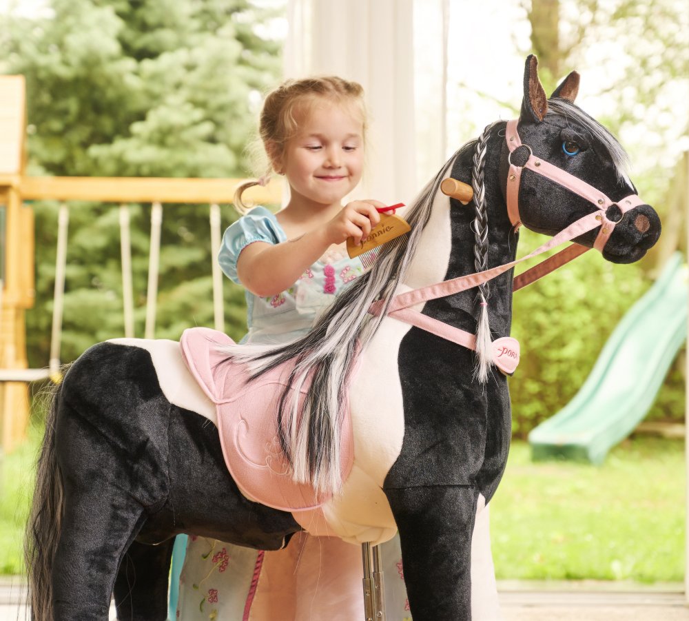 Další výhodou je možnost sedlo i ohlávku s otěžemi sundat – koníka Ponnie tedy můžete osedlat jako živého koně. Hřívu i ocas můžete česat a zaplétat na nich copánky.