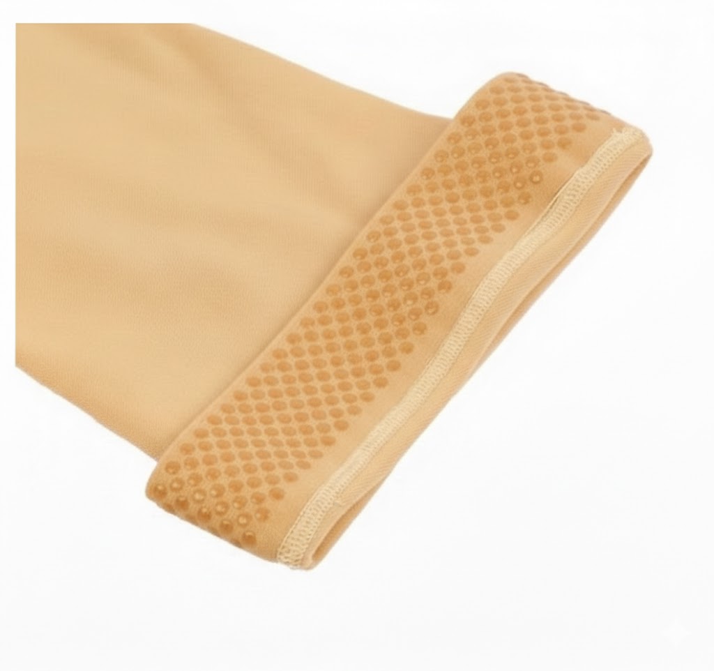 Popis produktu: Tyto vysoce kvalitní medicínské kompresní punčochy do stehen (thigh high) jsou navrženy pro podporu žilního oběhu, prevenci hluboké žilní trombózy a zmírnění příznaků varixů na dolních končetinách. Ideální jako doplňková léčba pro osoby trpící varixy, otoky nebo pro prevenci po operacích. Punčochy poskytují graduovanou kompresi, která je nejsilnější v oblasti kotníku a postupně slábne směrem nahoru, což pomáhá zlepšit průtok krve a snížit únavu nohou. Díky bezšvovému designu a silikonovému pásku na stehnech zůstávají na místě bez sklouzávání, zajišťují komfort při chůzi i sportu a neomezují pohyb v koleni.