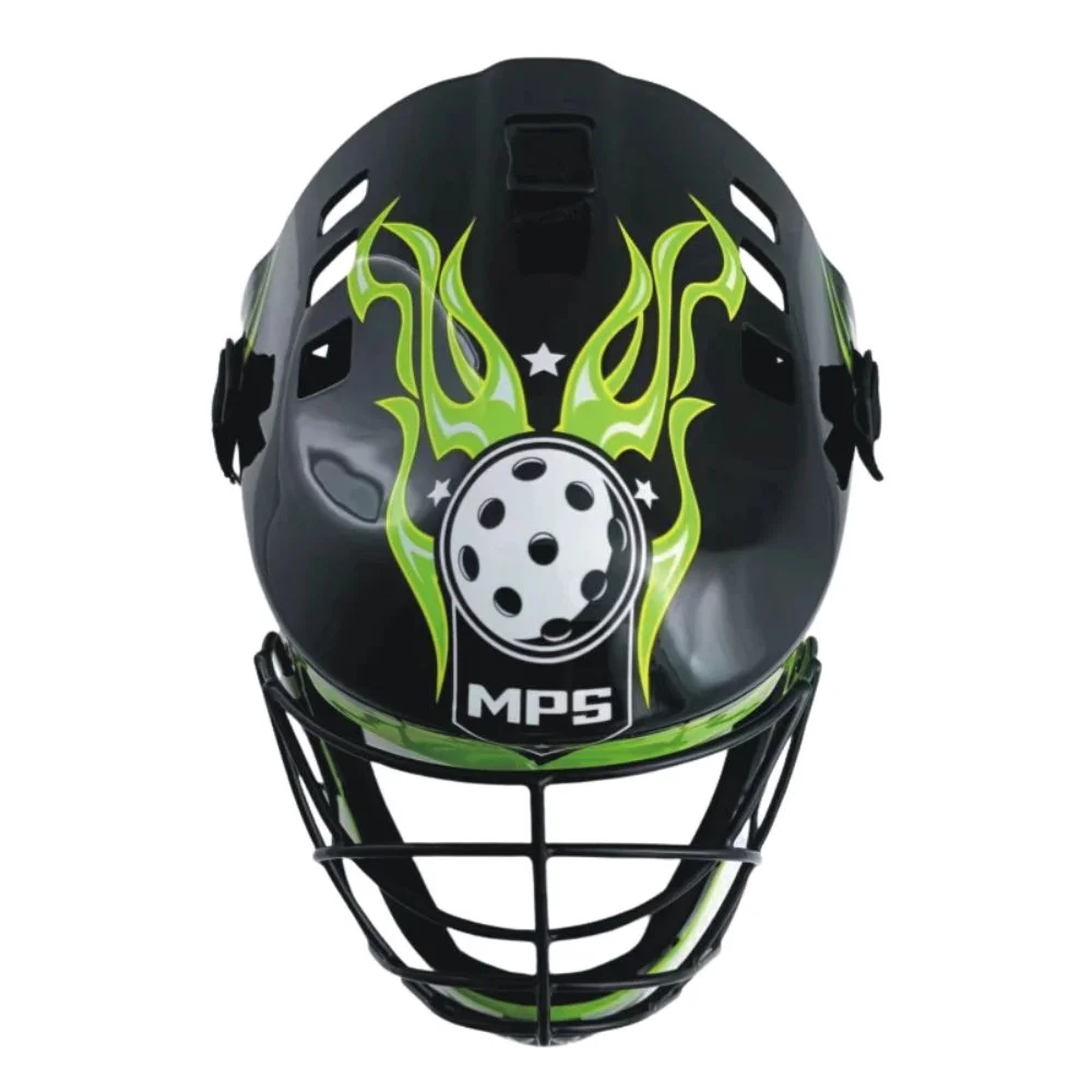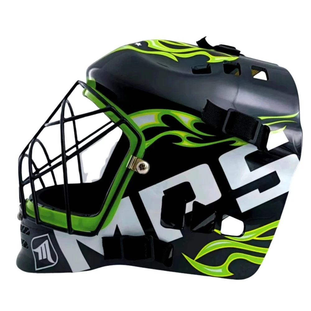 Brankářská maska MPS PRO FLAME Black/Green vyrobená z mimořádně odolného plastu, který chrání vaši tvář. Maska je anatomicky polstrovaná a perfektně sedí díky nastavitelným pásům. Kvalitnější ventilace vzduchu je umožněna pomocí speciálních otvorů. Tvar masky zajišťuje brankáři velký přehled, bezpečnost a komfort. Maska má exkluzivní lesklý design, který je moderní a stylový.Materiálové složení: