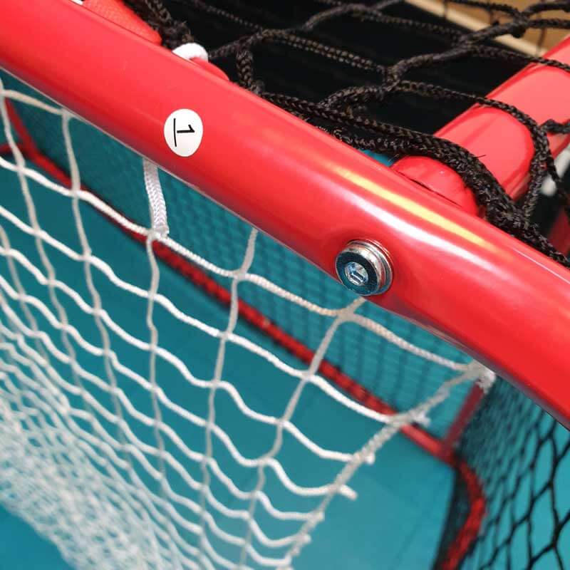 Velmi rychle složitelná i rozložitelná florbalová skládací branka zápasových rozměrů.